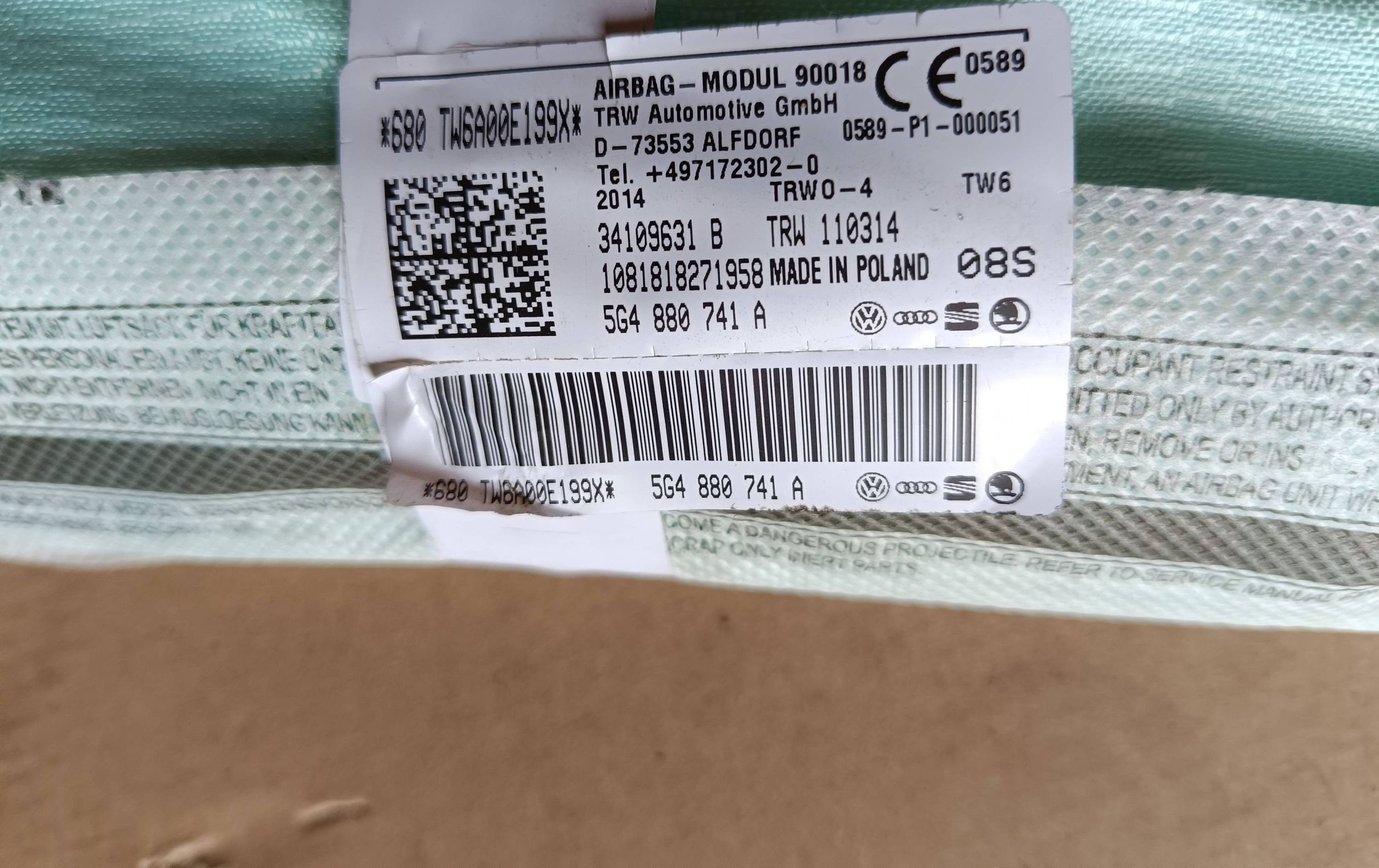 Боковая подушка безопасности 5G4880741A Volkswagen Golf VII