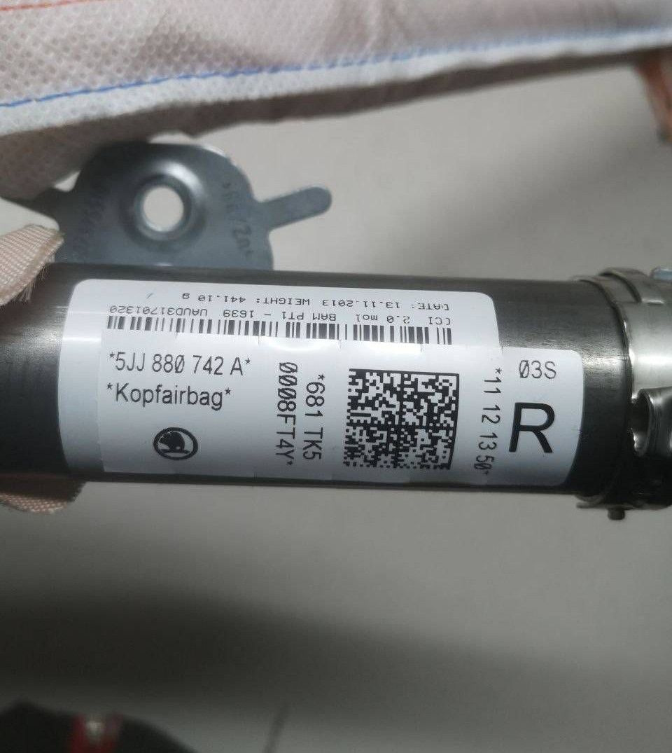 Боковая подушка безопасности 5JJ880742A Skoda Rapid (NH)