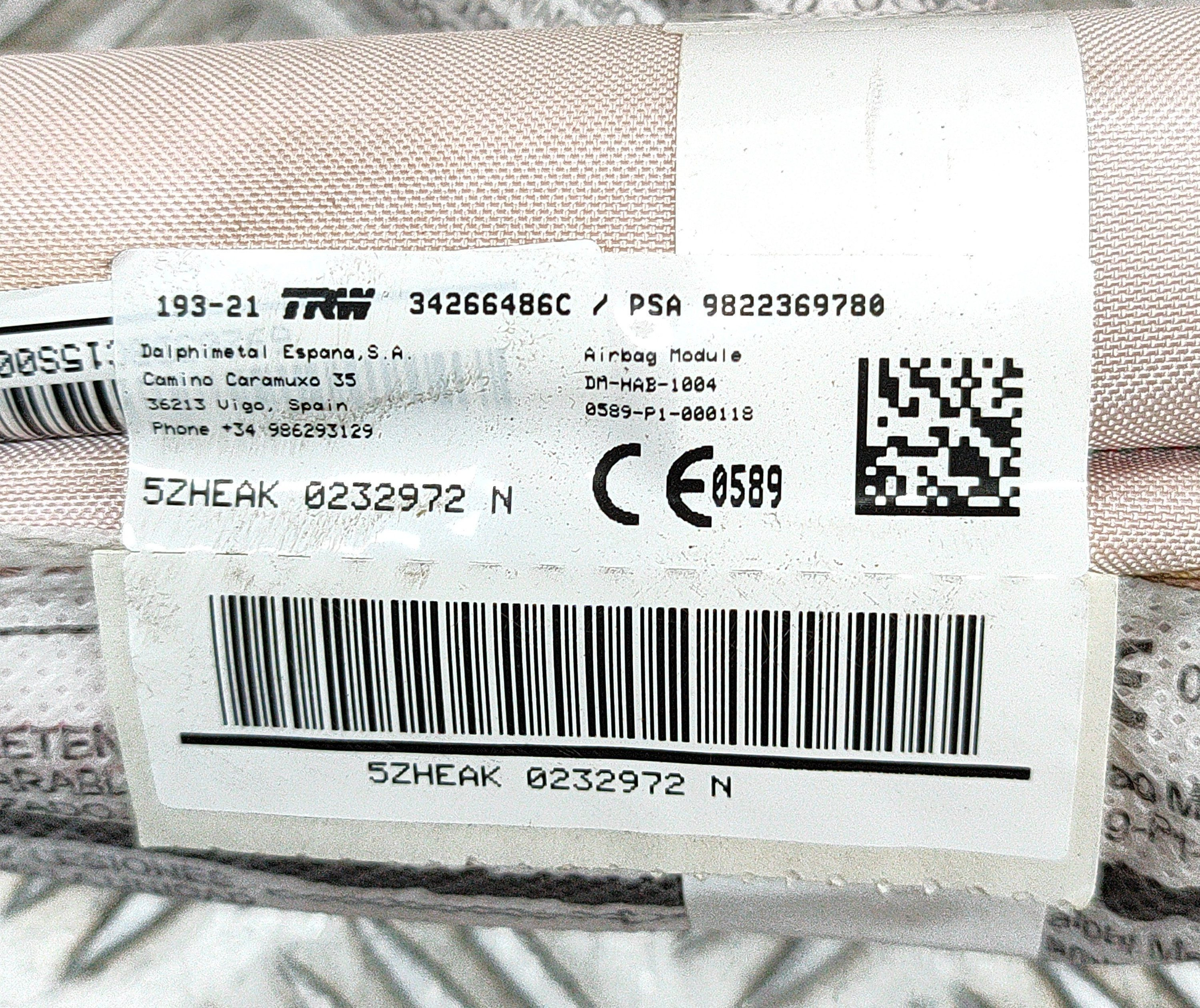 Боковая подушка безопасности 9822369780 Citroen C5 Aircross