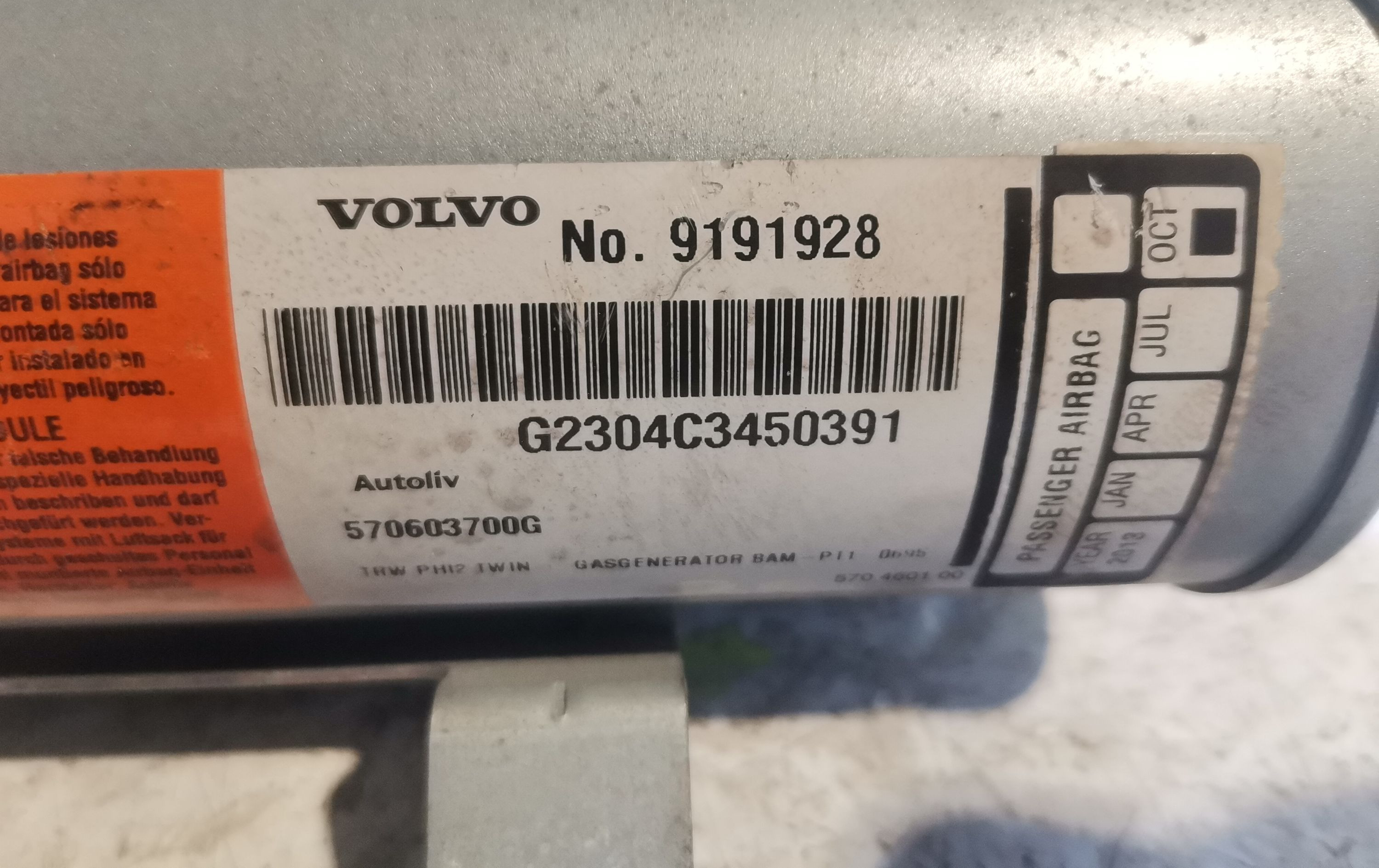 Подушка безопасности пассажира 30754337 Volvo V70