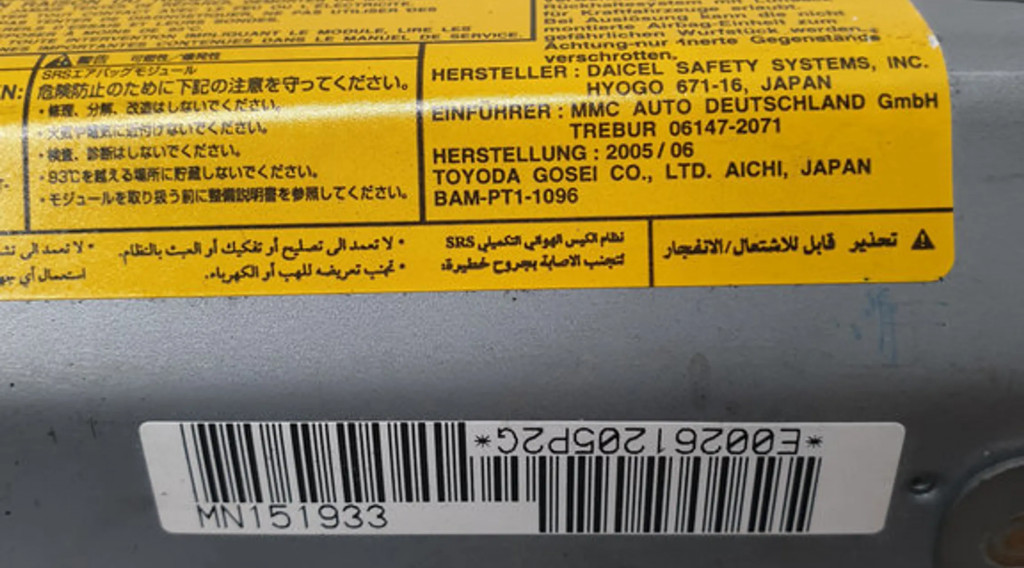 Подушка безопасности пассажира MN151933 Mitsubishi Grandis