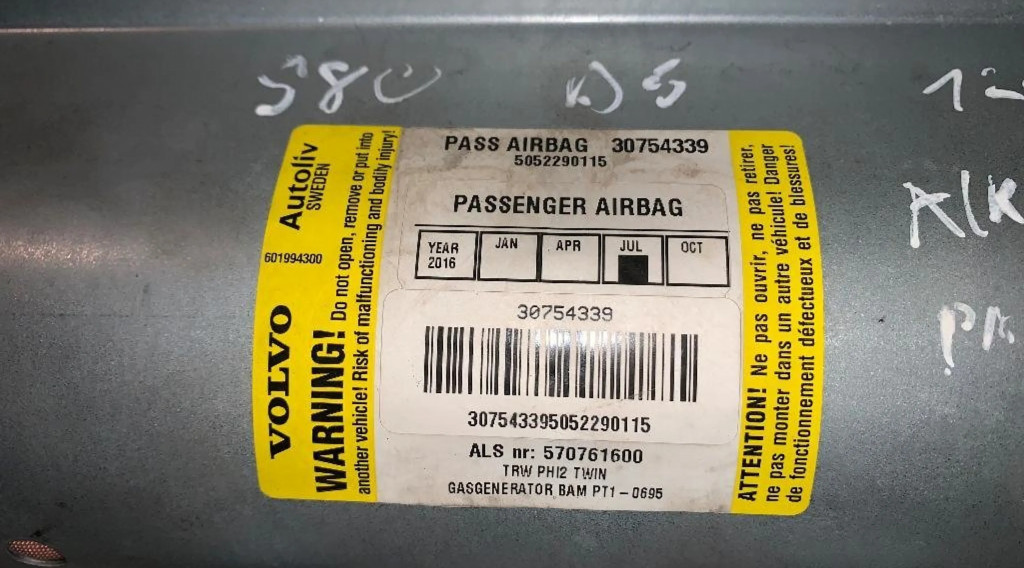 Подушка безопасности пассажира 30754339, B3-9 Volvo S80