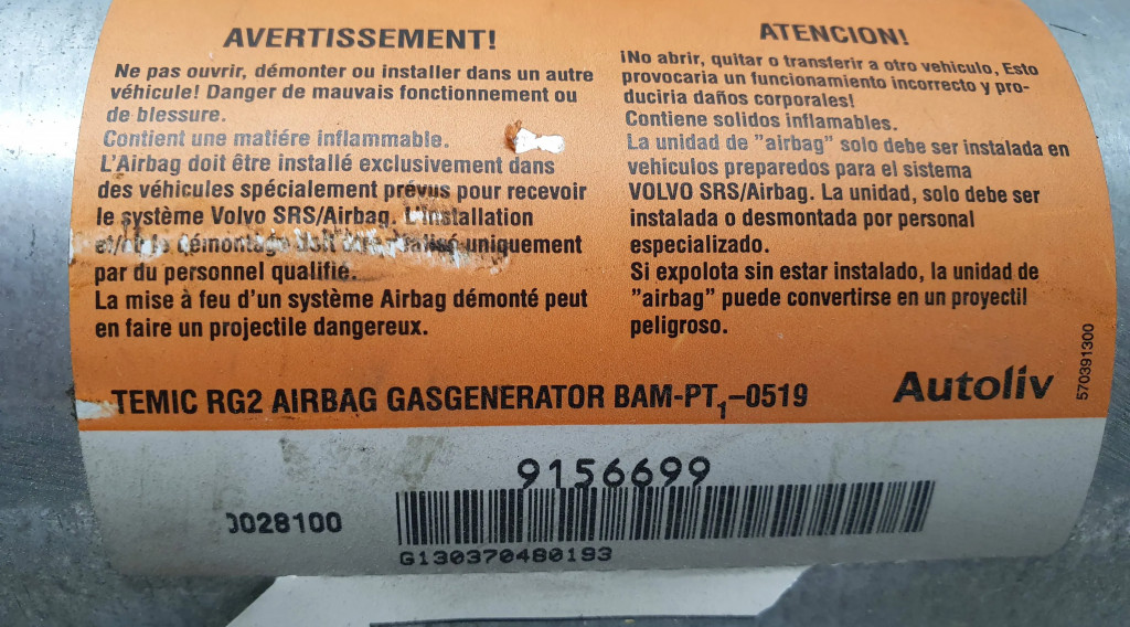 Подушка безопасности пассажира 9156699, G130370480193 Volvo V70