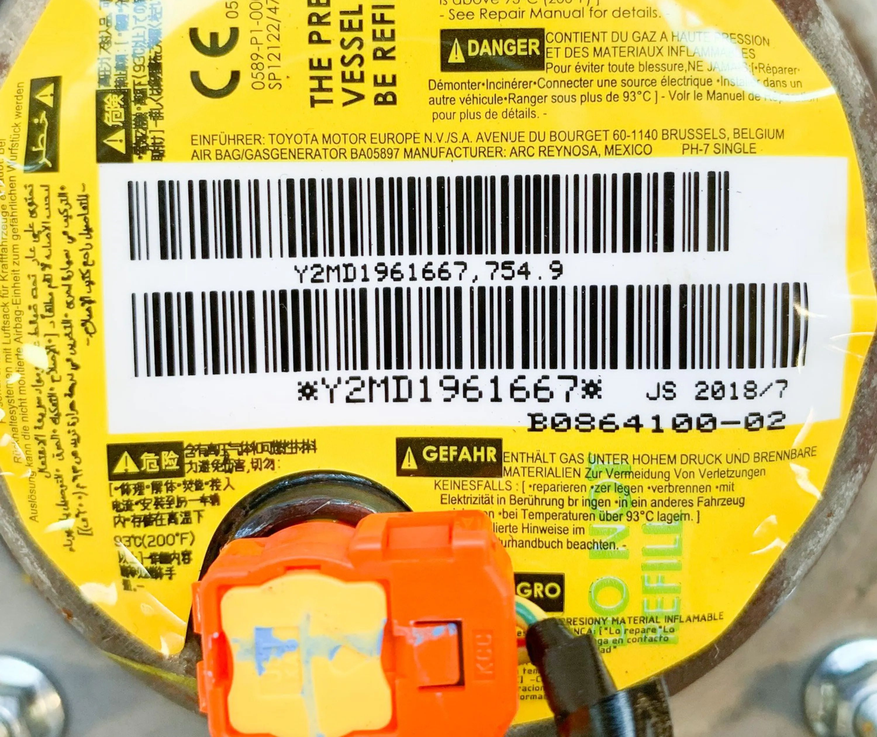 Подушка безопасности пассажира TG15B06001, 0080P1150041 Toyota C-HR