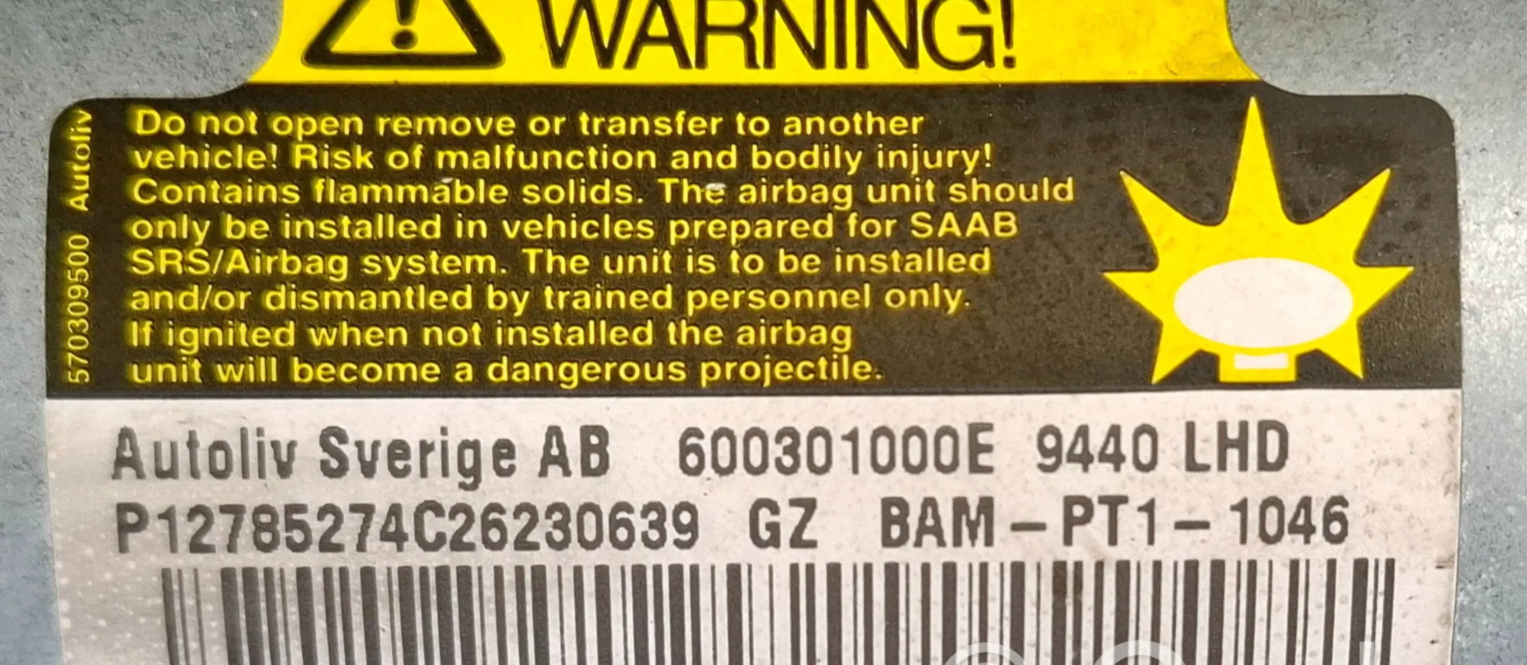 Подушка безопасности пассажира BAMPT11046, 600301000E Saab 9-3 Ver1