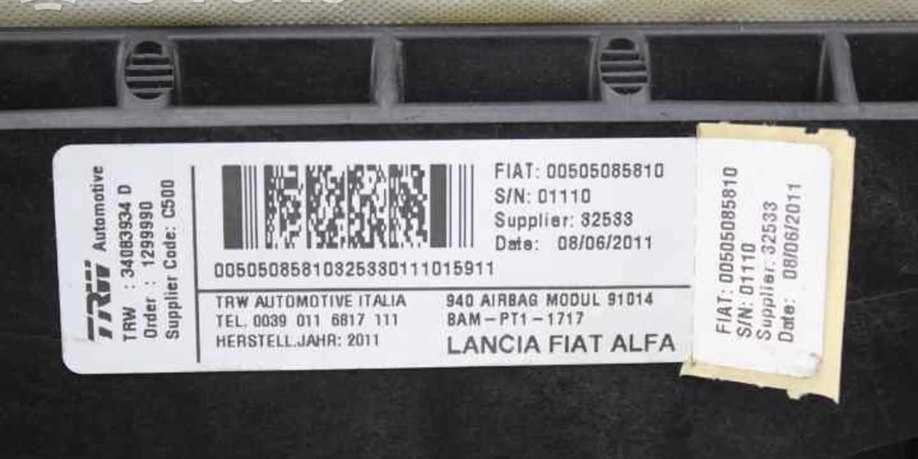 Подушка безопасности пассажира 34083934D, 505085810 Alfa Romeo Giulietta