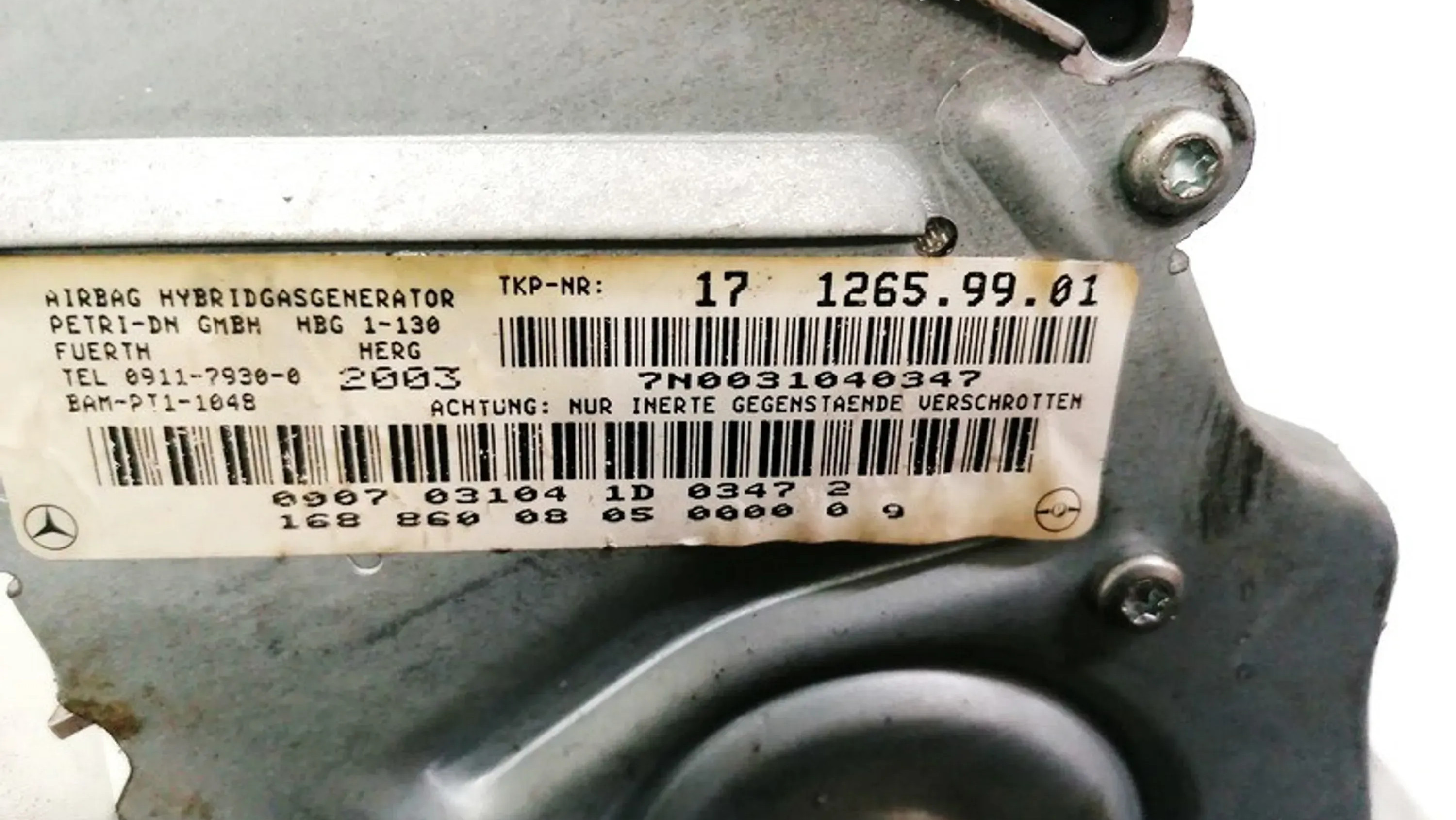 Подушка безопасности пассажира 1688600805, 7N0031040347 Mercedes-Benz A W168
