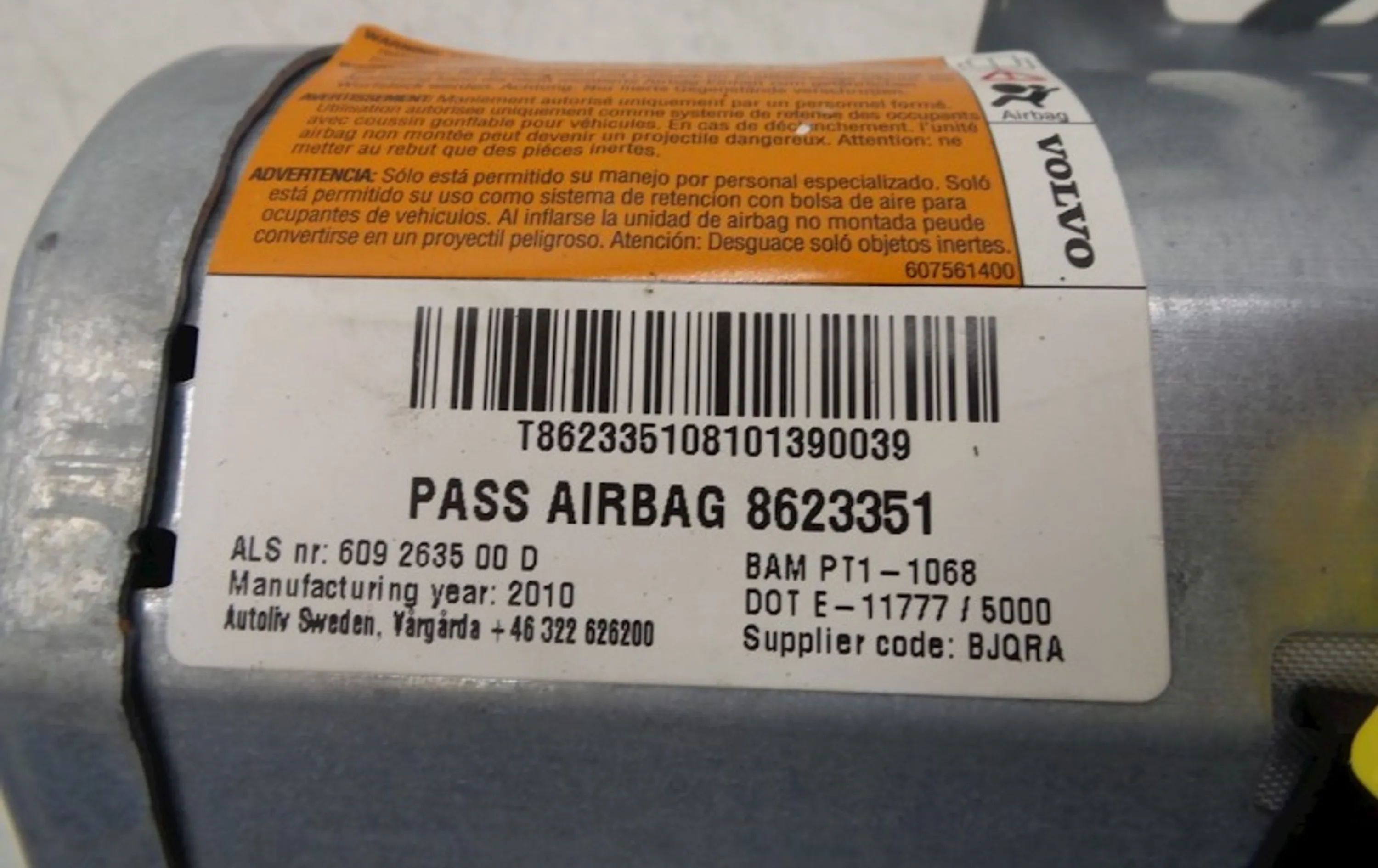 Подушка безопасности пассажира 8623351, 8623351 Volvo C30