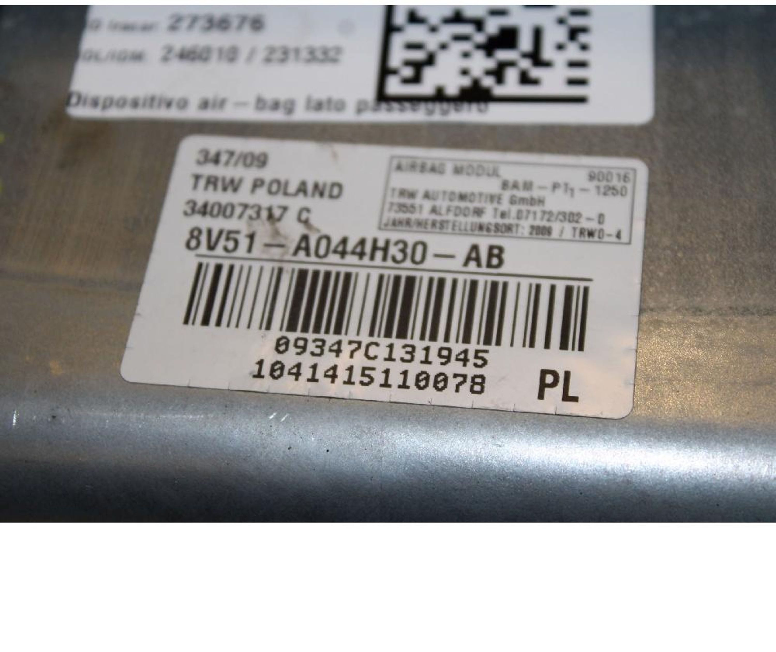 Надувная подушка для пассажира 8V51A044H30AB Ford Fiesta
