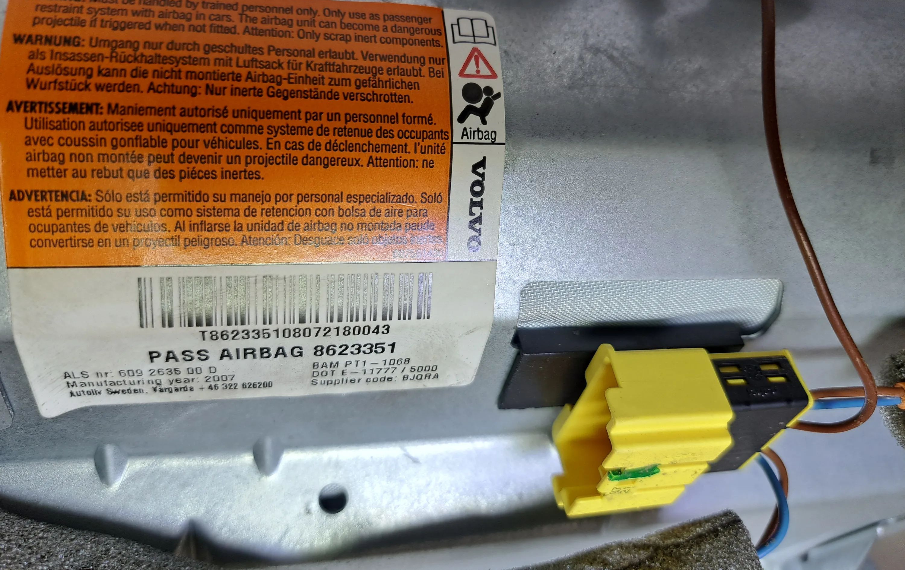 Подушка безопасности пассажира 8623351, 602926100 Volvo C30