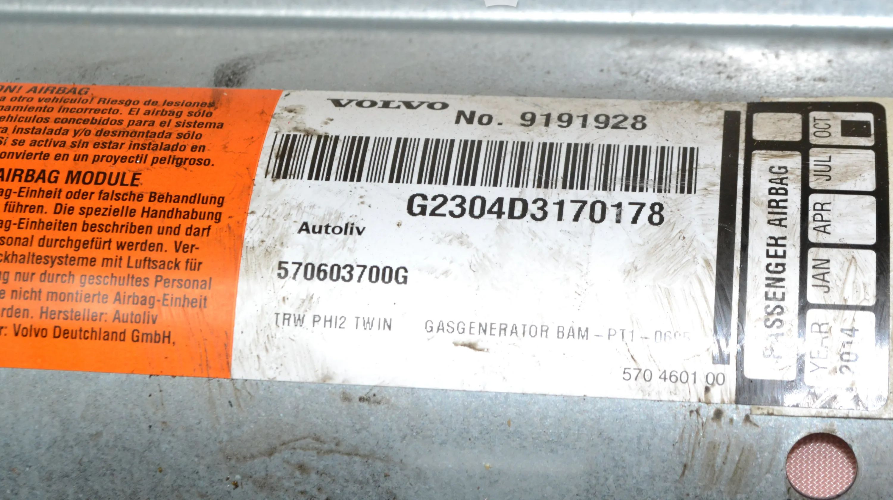 Подушка безопасности пассажира 570603700G, 9191928 Volvo V70