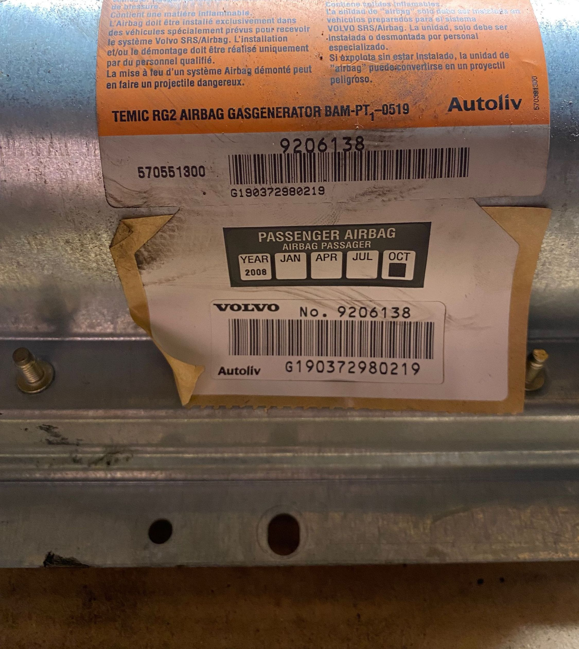 Подушка безопасности пассажира 9206138, 570551300 Volvo S70 V70 V70 XC