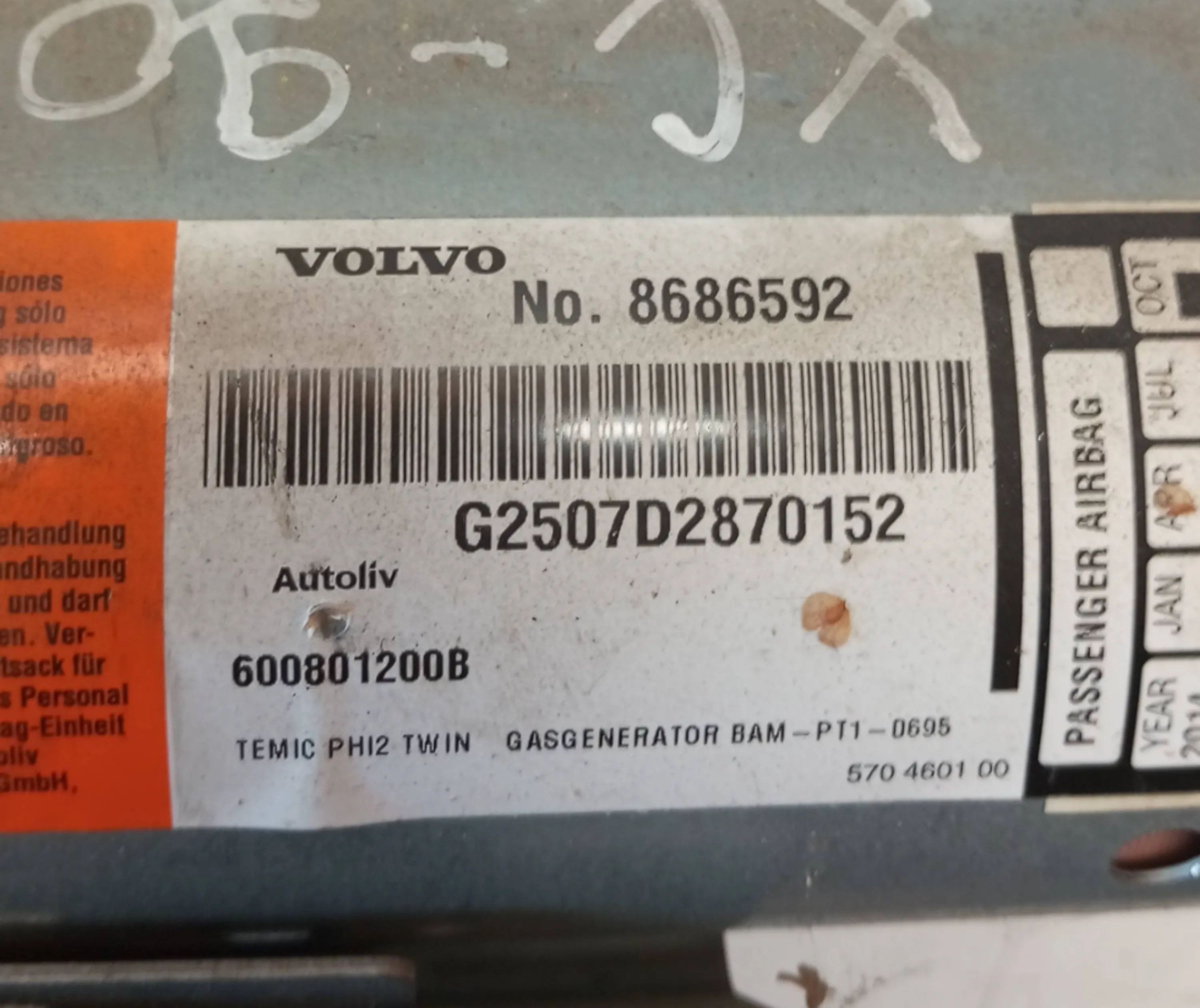 Подушка безопасности пассажира 8686592, 600801200B Volvo XC90