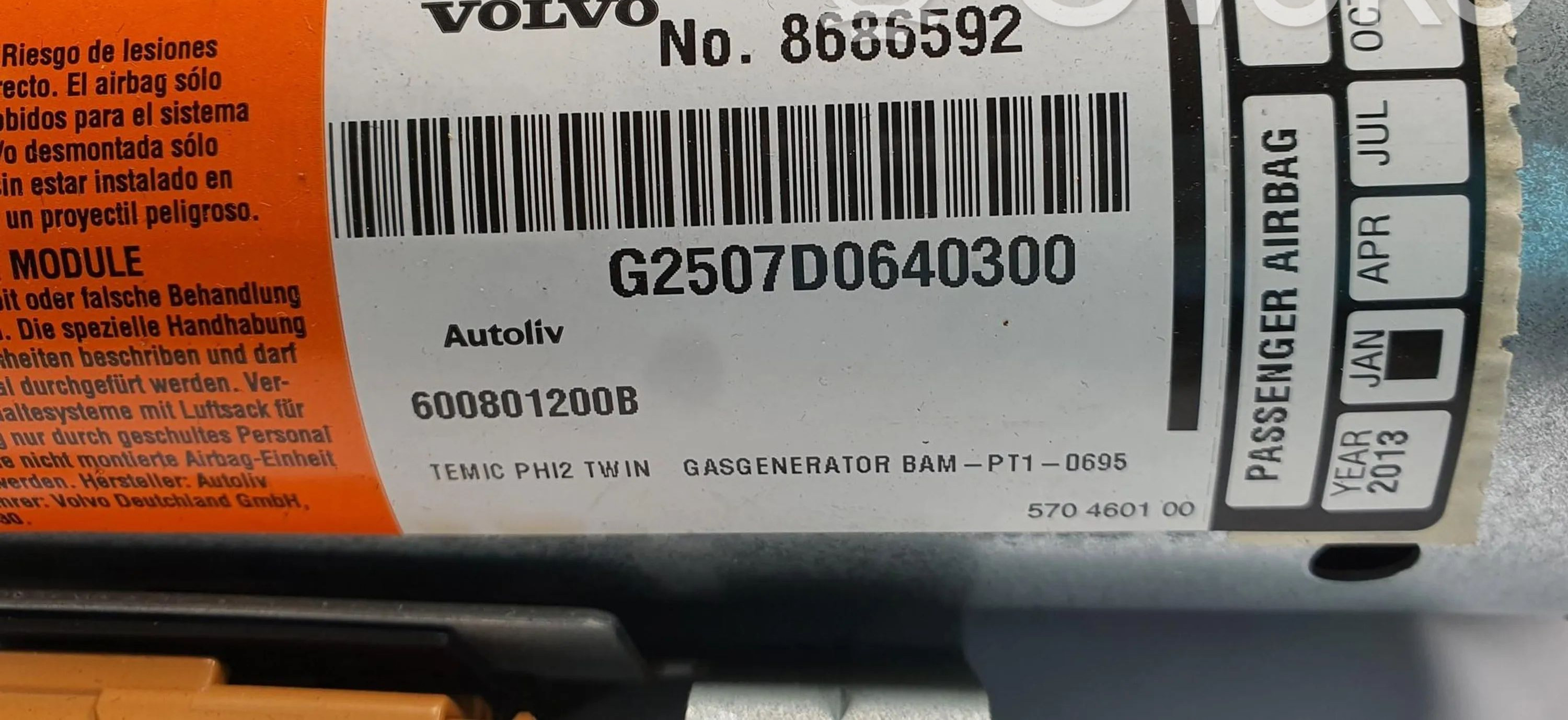 Подушка безопасности пассажира 8686592 Volvo XC90