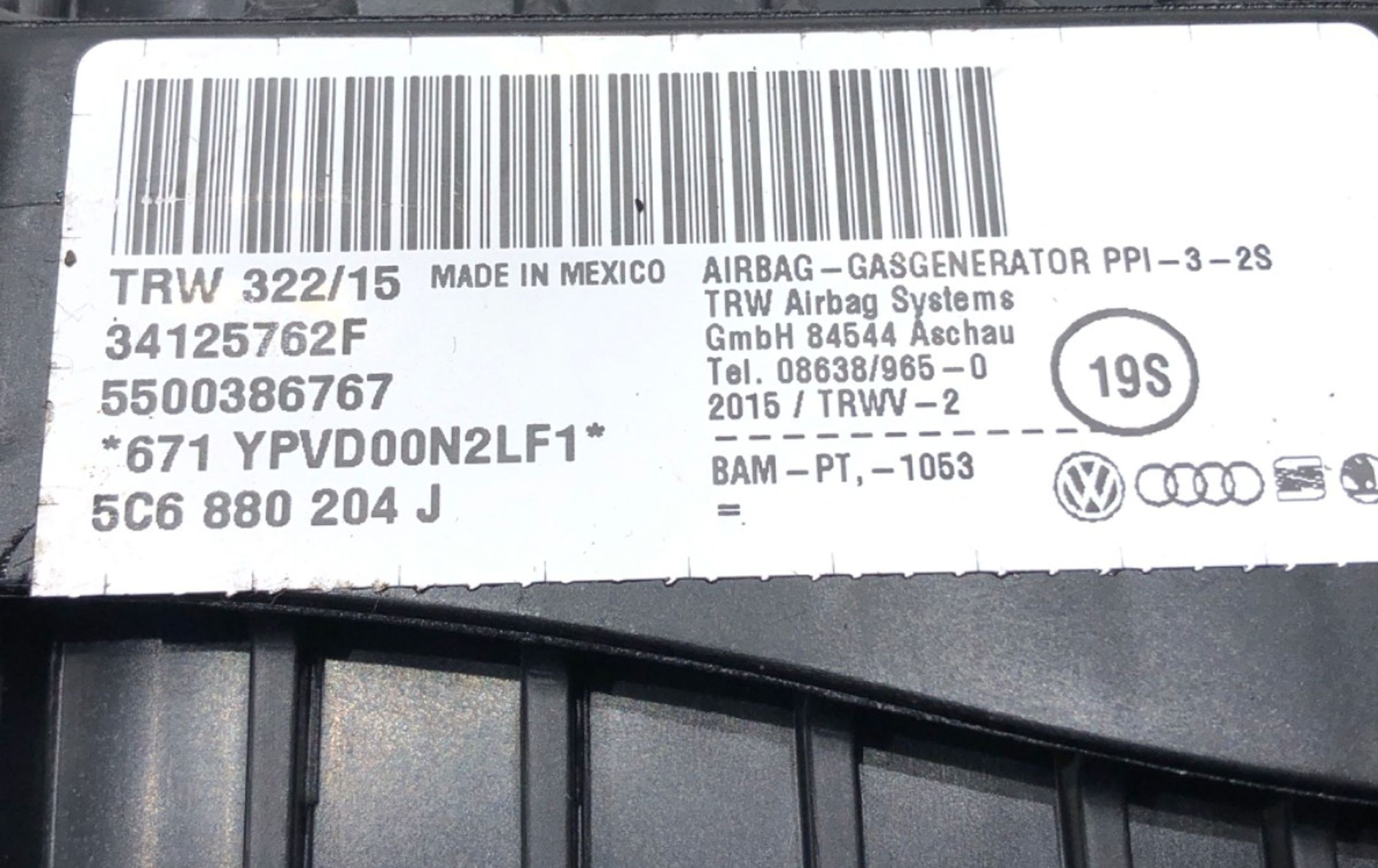 Подушка безопасности пассажира 5C6880204J Volkswagen Jetta VI