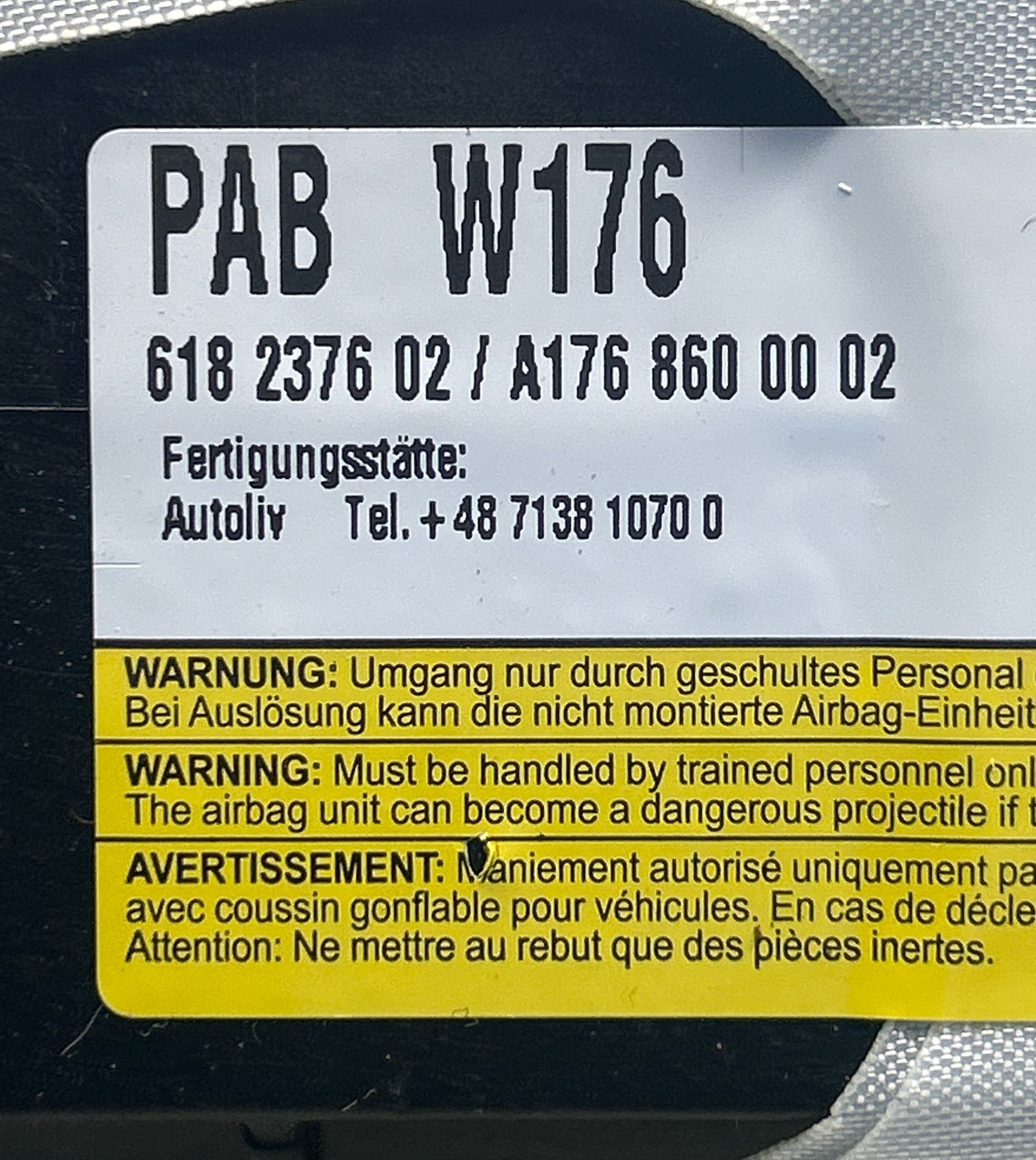 Подушка безопасности пассажира A1768600002, 618237602 Mercedes-Benz GLA W156
