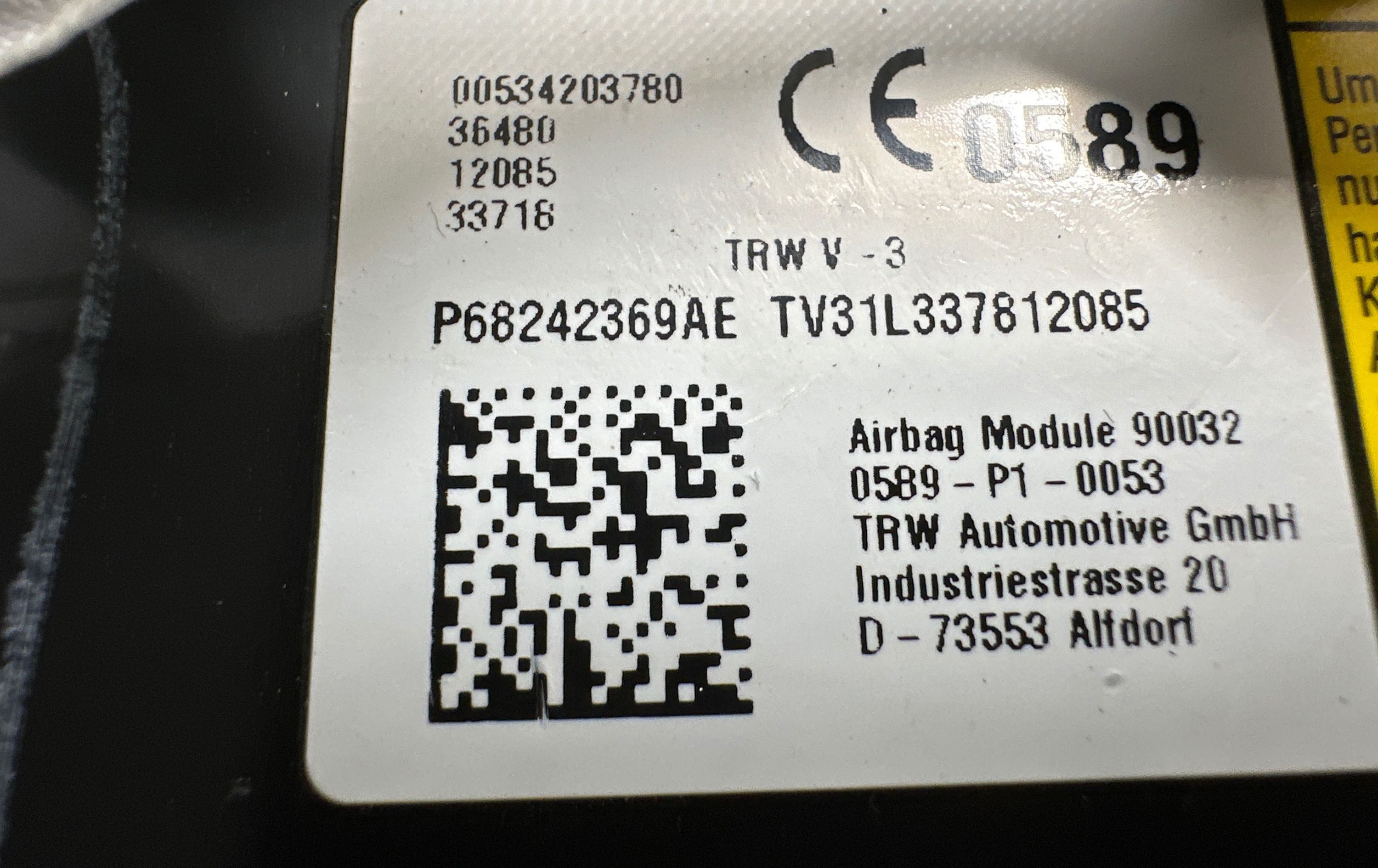 Подушка безопасности пассажира P68242369AE, 00534203780 Jeep Compass
