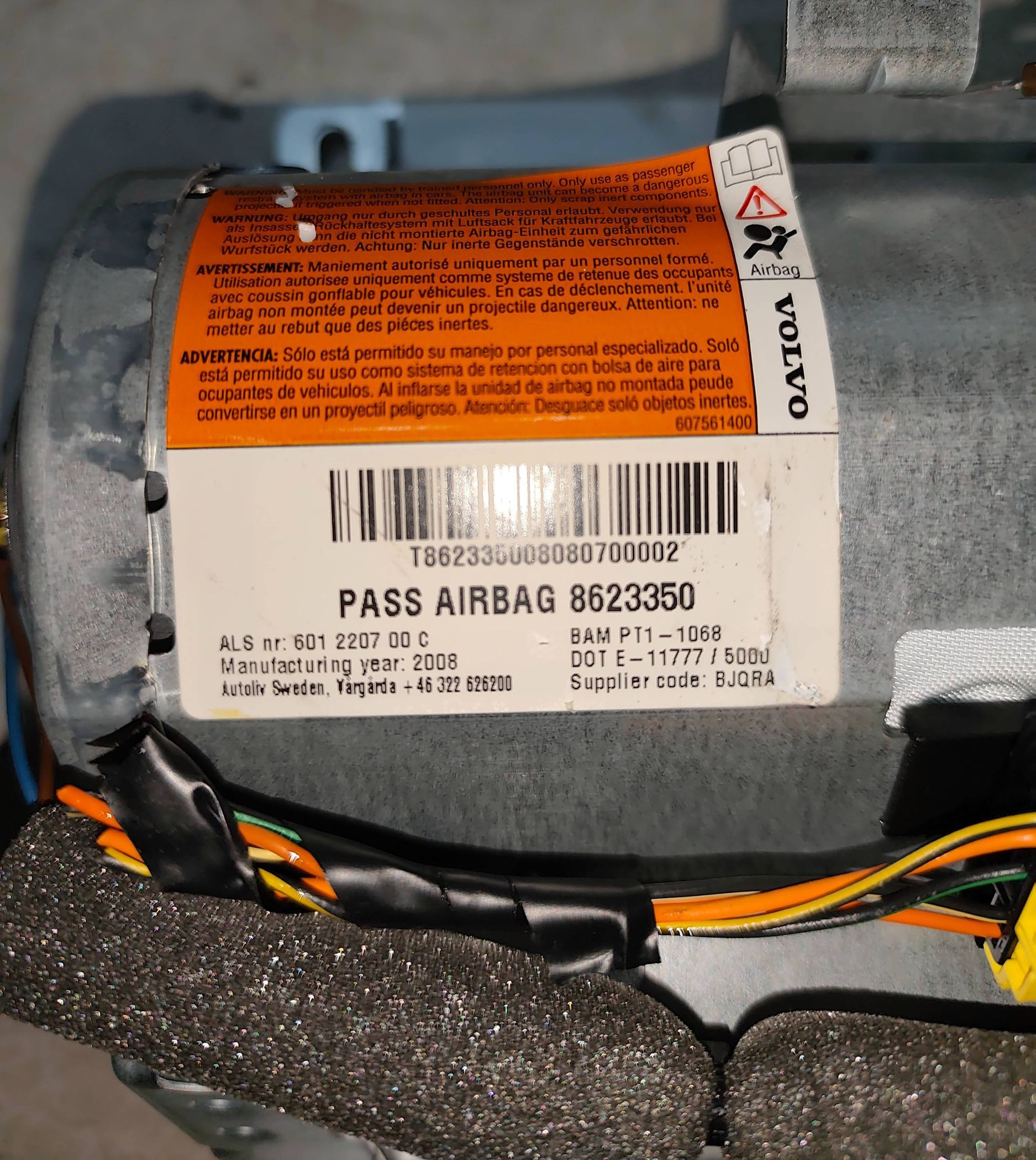 Подушка безопасности пассажира 601220700C, 8623350 Volvo V50