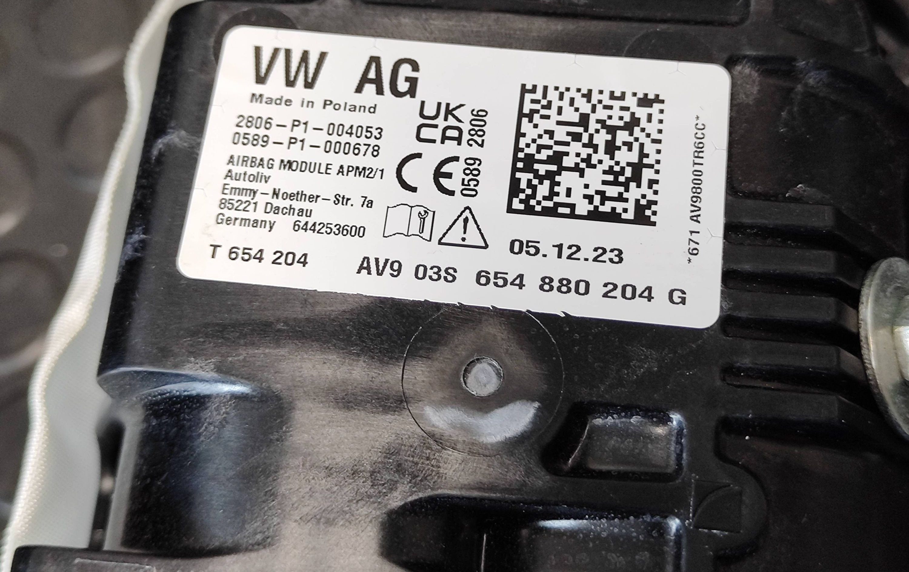 Подушка безопасности пассажира 654880204G Skoda Kamiq