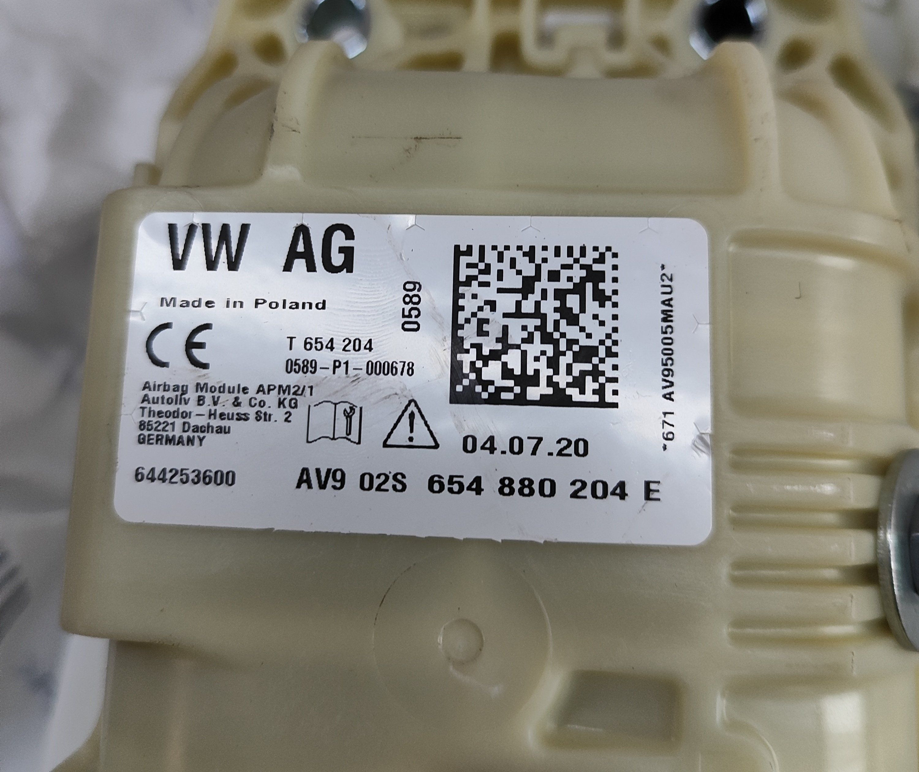 Подушка безопасности пассажира 654880204E Skoda Kamiq