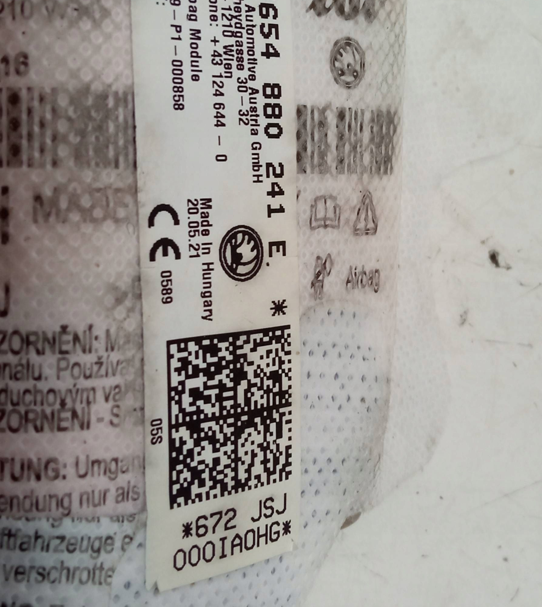 Подушка безопасности пассажира 654880241E Skoda Scala