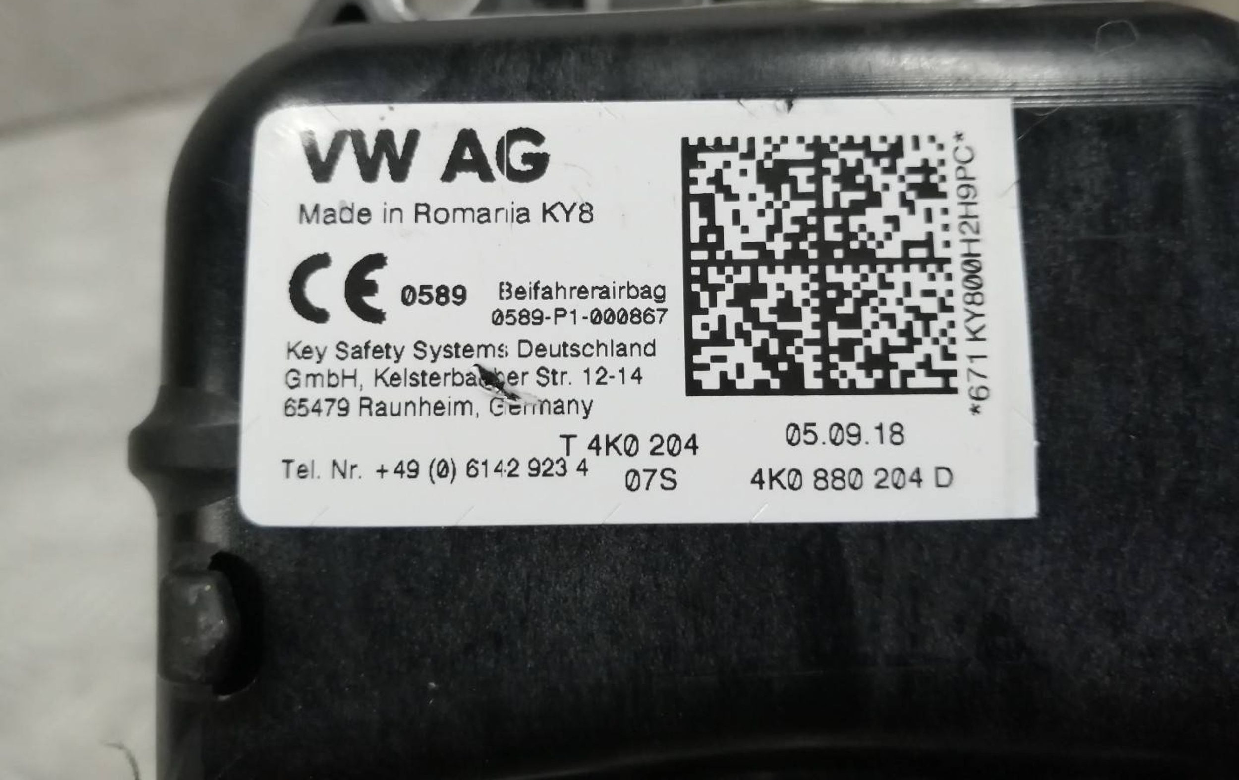Подушка безопасности пассажира 4K0880204D, 0589P1000867 Audi A6 S6 C8 4K