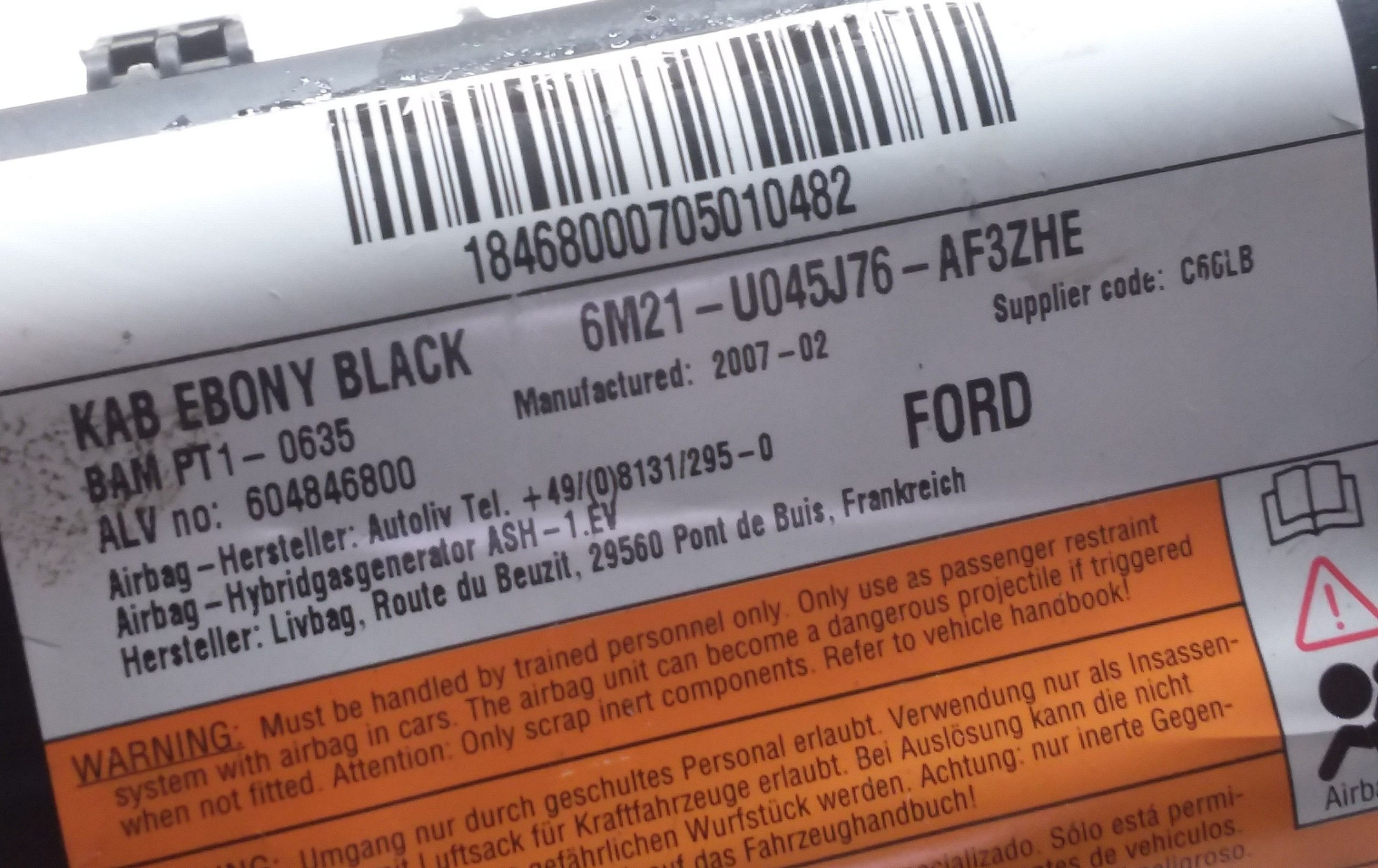 Подушка безопасности пассажира 6M21U045J76AF3ZHE Ford S-MAX