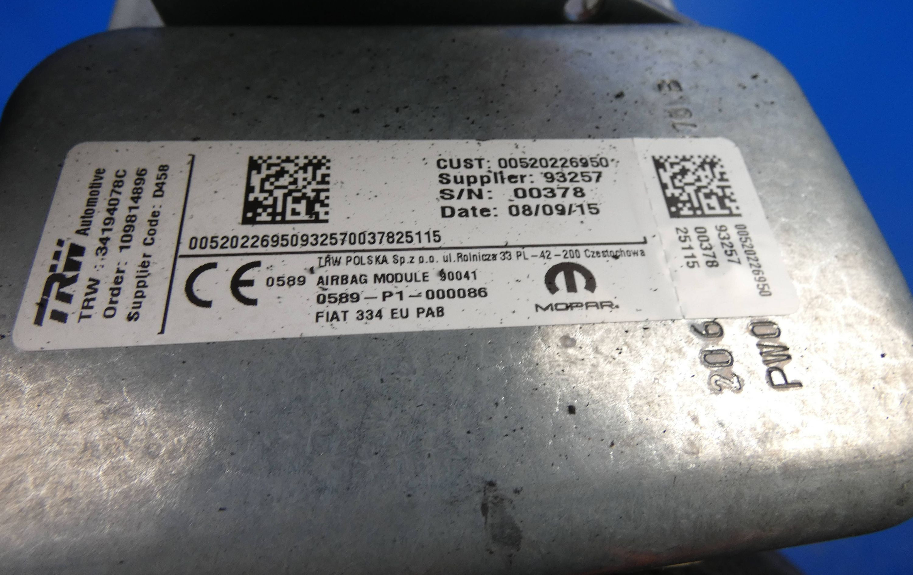 Подушка безопасности пассажира 00520226950, 00378 Fiat 500X
