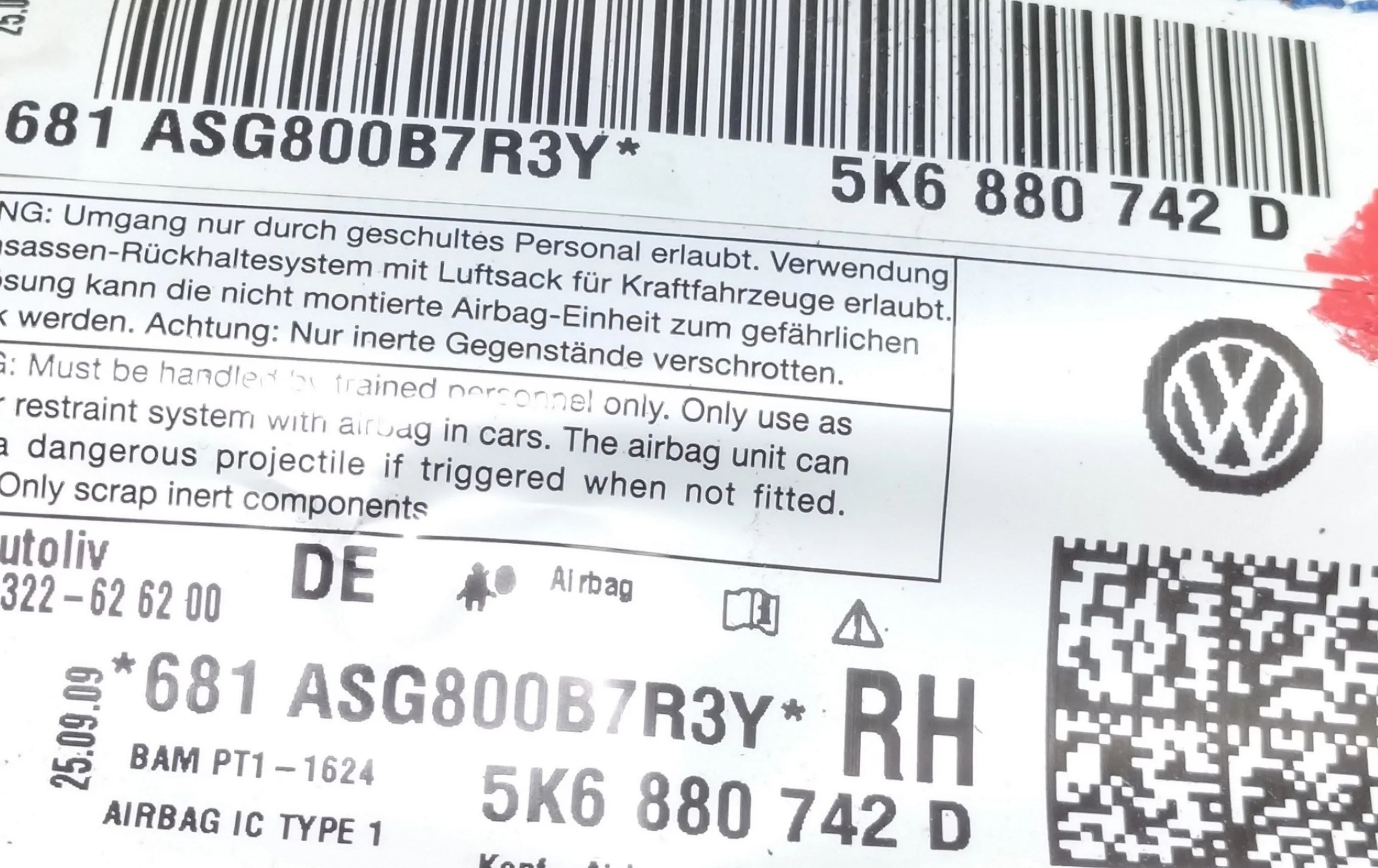 Подушка безопасности двери 5K6880742D Volkswagen Golf SportWagen