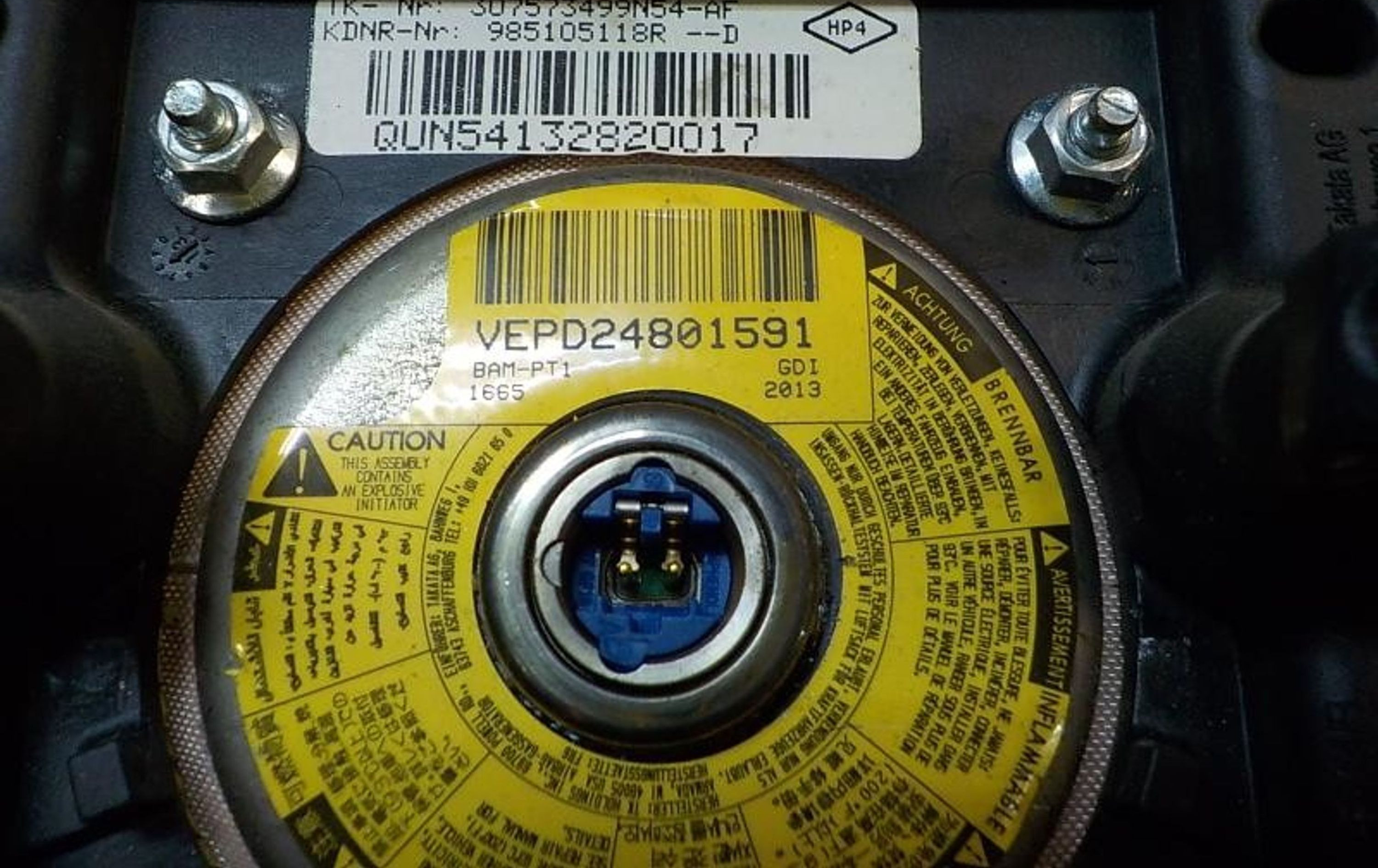 Подушка безопасности водителя 985105118R, 985105118R Dacia Dokker