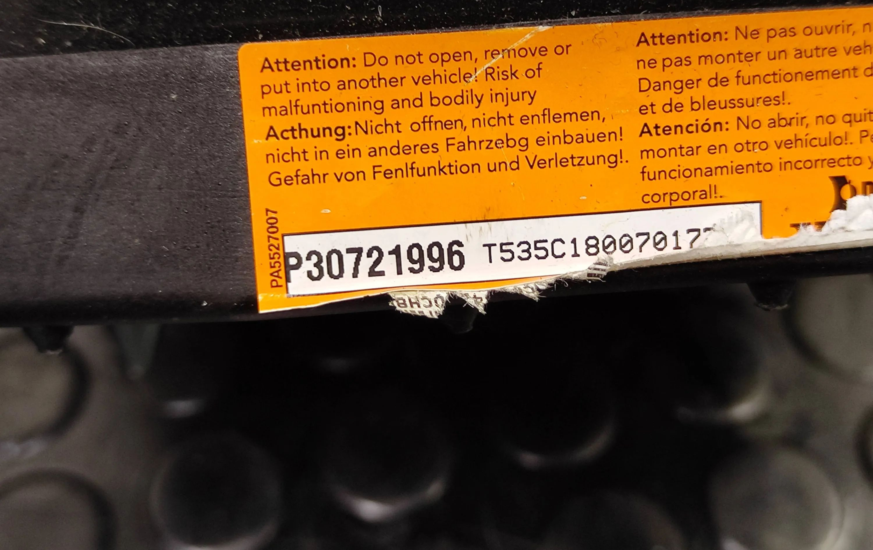 Подушка безопасности водителя P30721996 Volvo V70