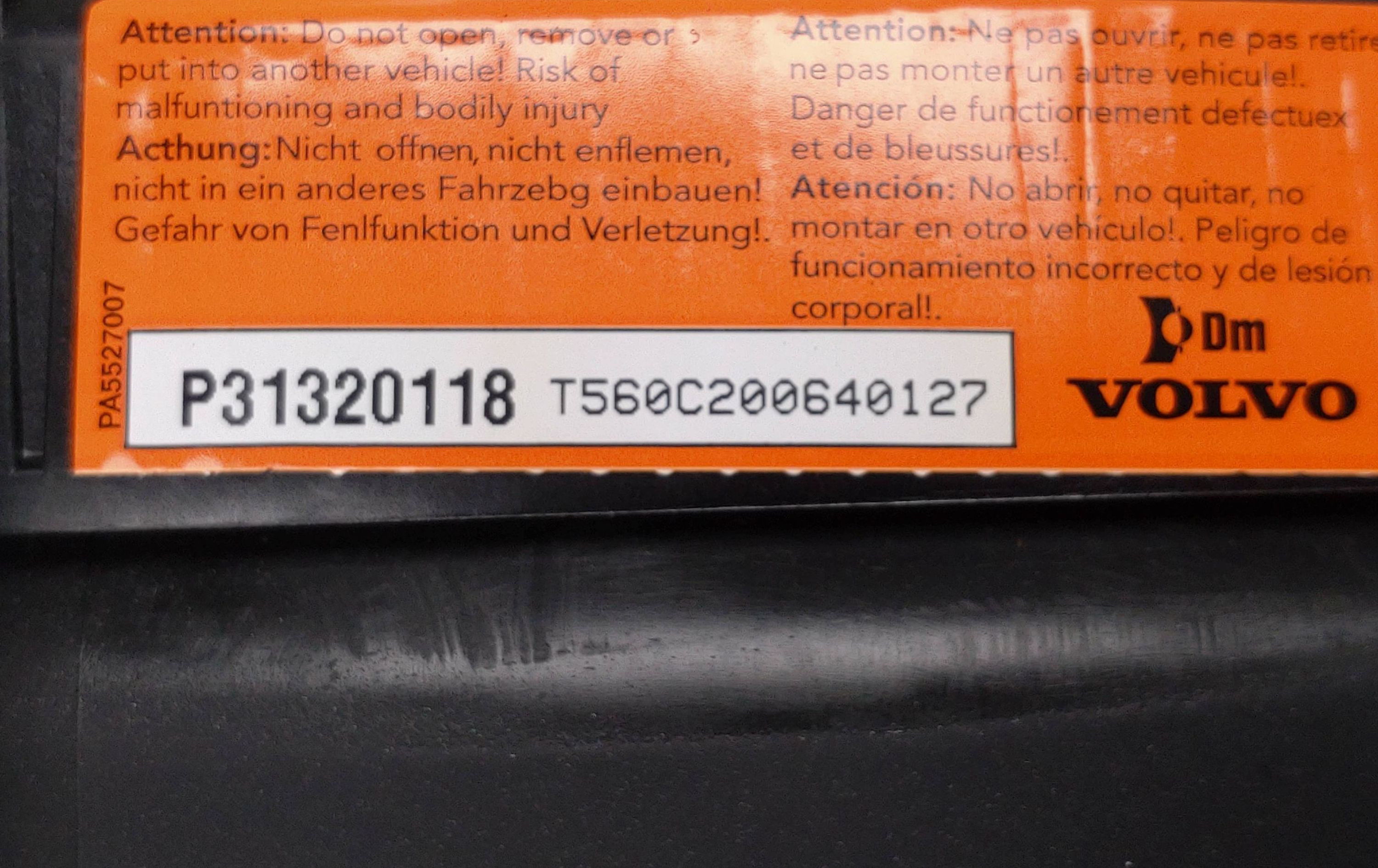 Подушка безопасности водителя 31320118 Volvo V70