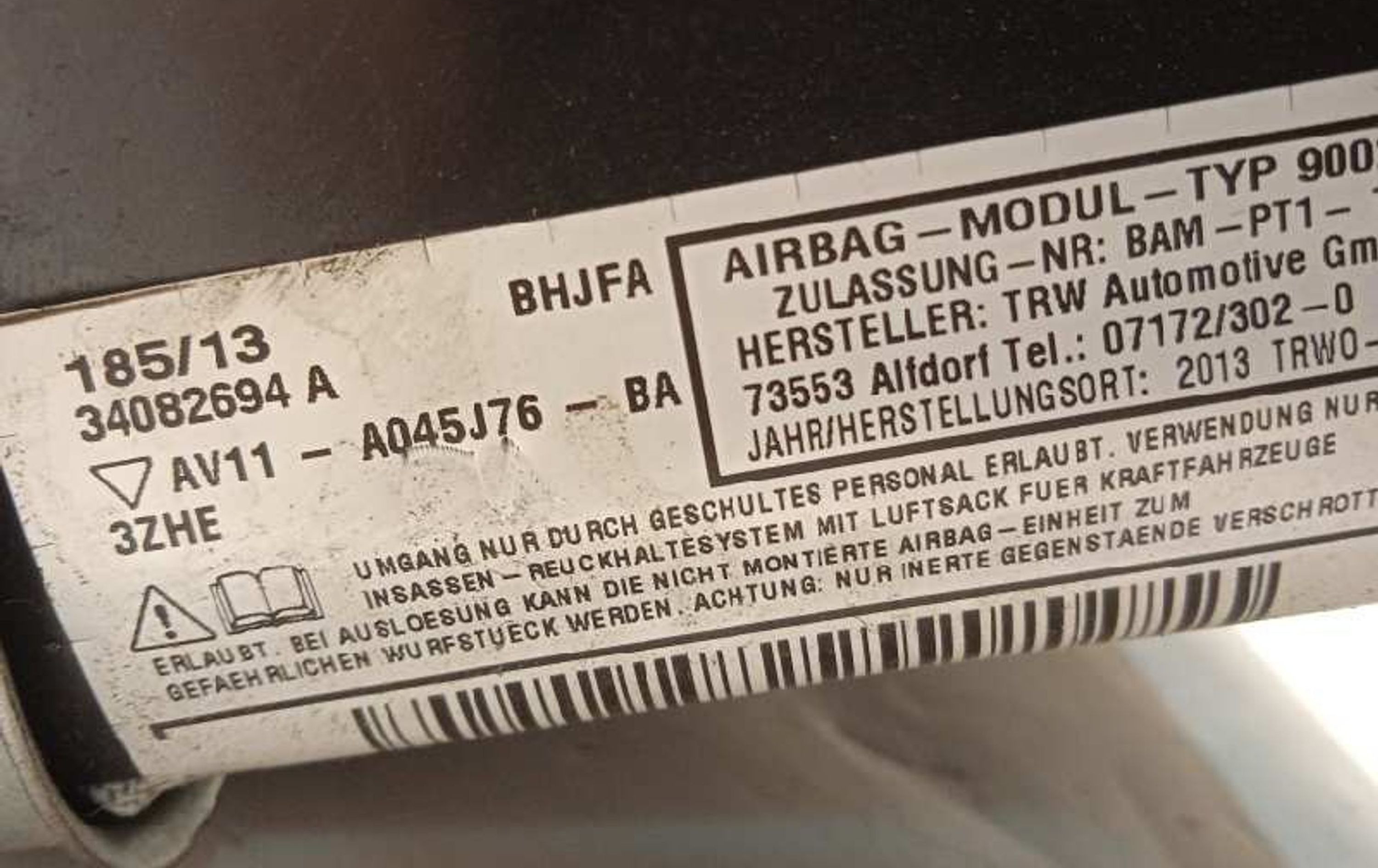 Подушка безопасности водителя AV11A045J76BA3ZHE, 1944936 Ford B-MAX