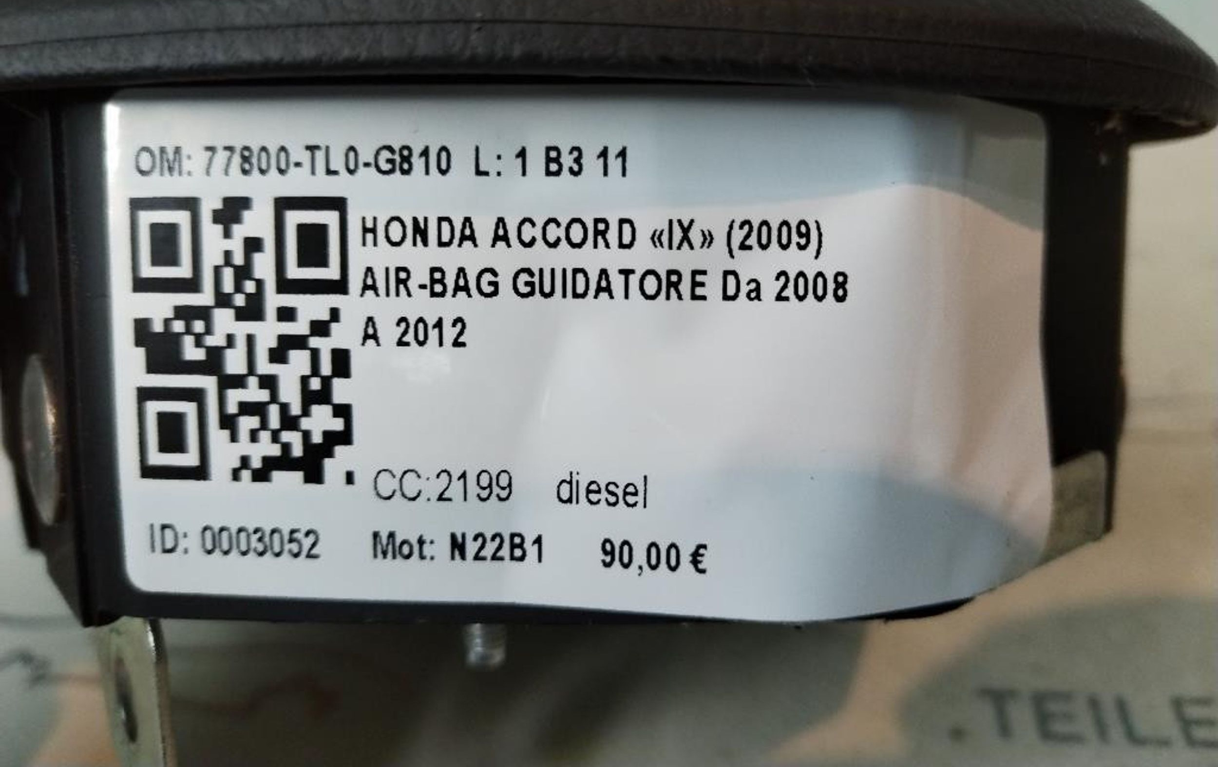 Подушка безопасности водителя 77800-TL0-G810, 77800-TL0-G810 Honda Accord