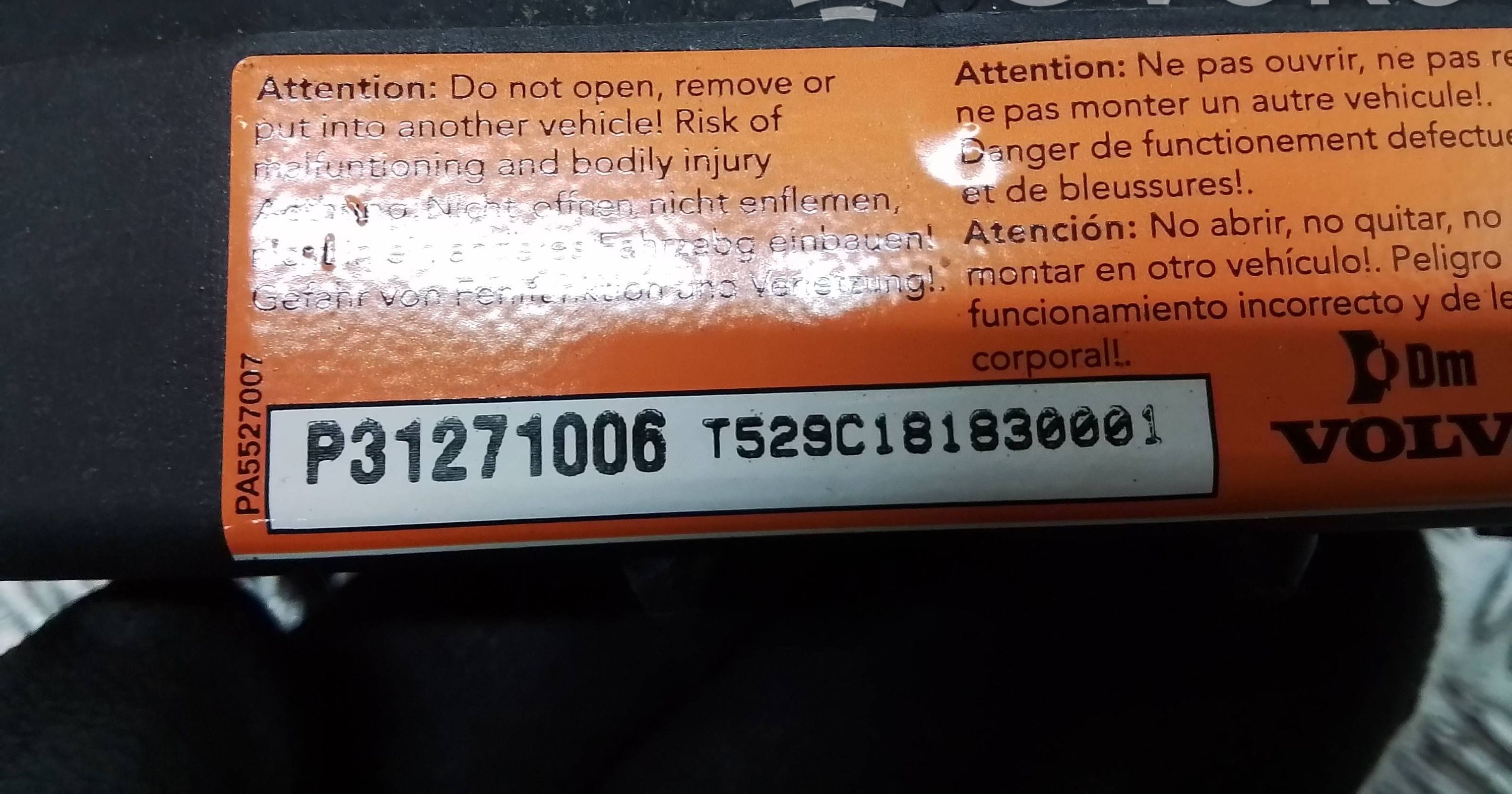 Подушка безопасности водителя 31271006 Volvo V70