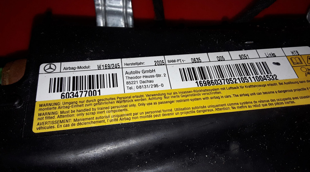 Подушка безопасности в сиденье 1698603705, 603477001 Mercedes-Benz A W169