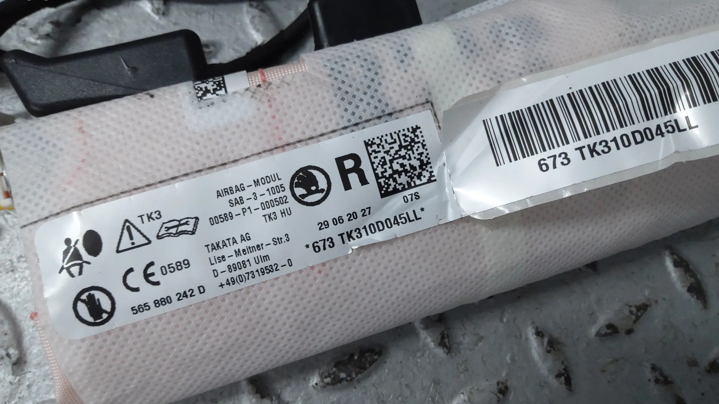 Подушка безопасности в сиденье 565880242D, 565880242A Skoda Kodiaq