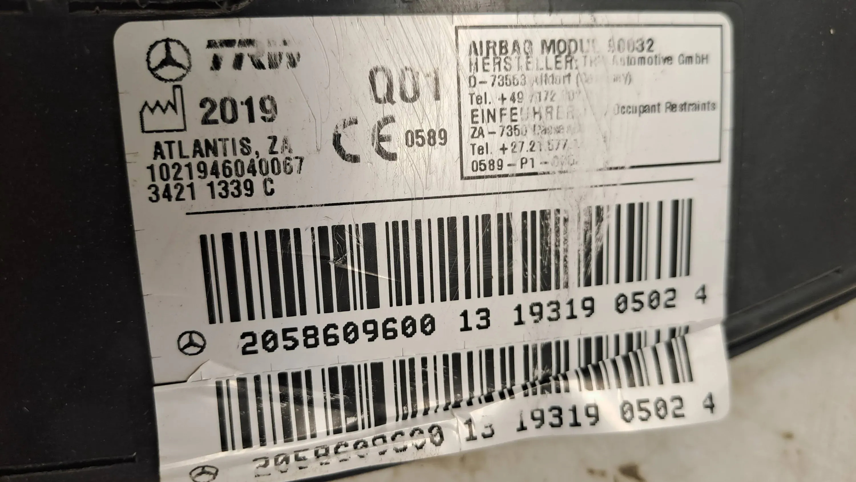 Подушка безопасности в сиденье 2058609600, 193190502 Mercedes-Benz GLC X253 C253
