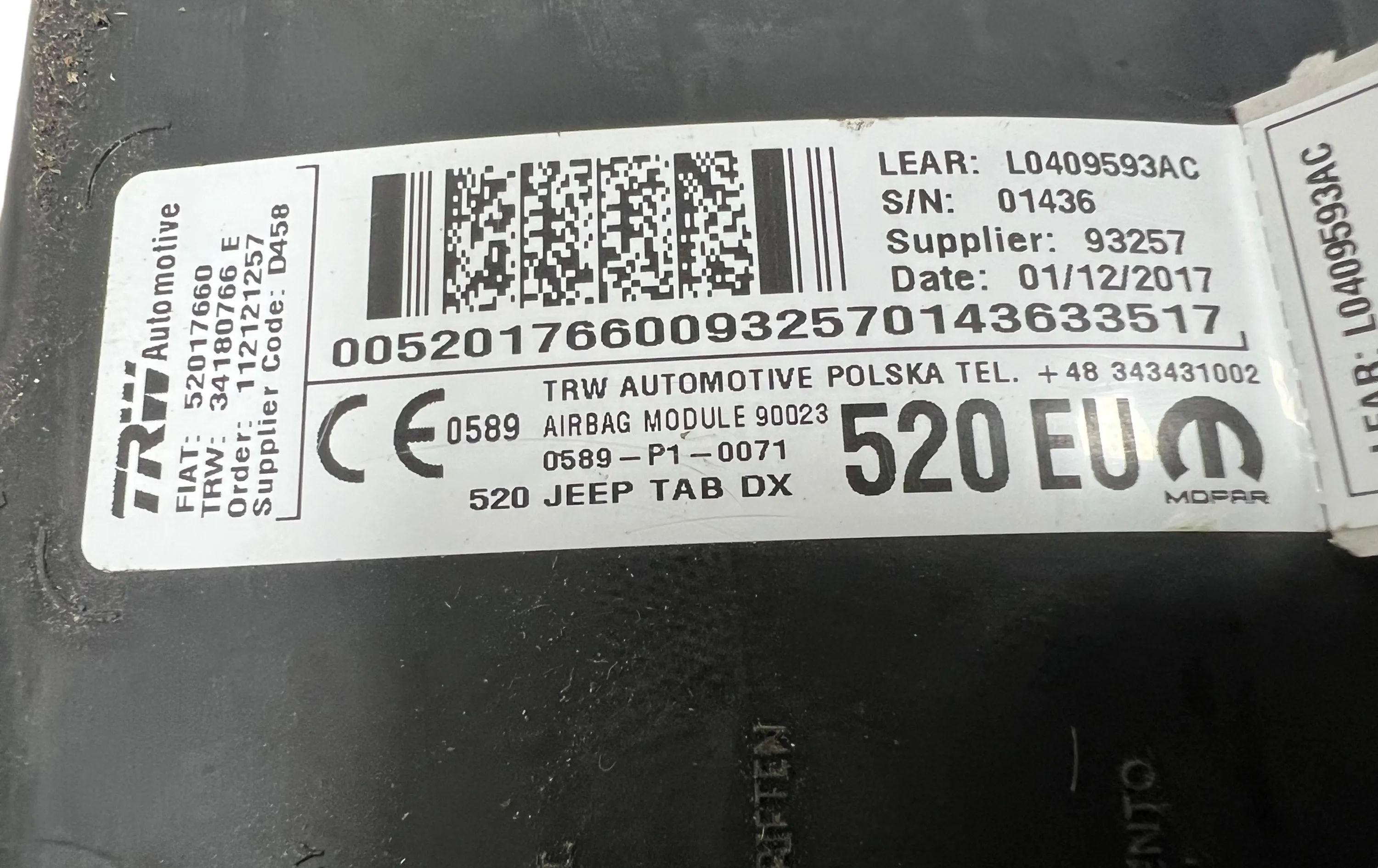 Подушка безопасности в сиденье L0409593AC, 343431002 Jeep Renegade