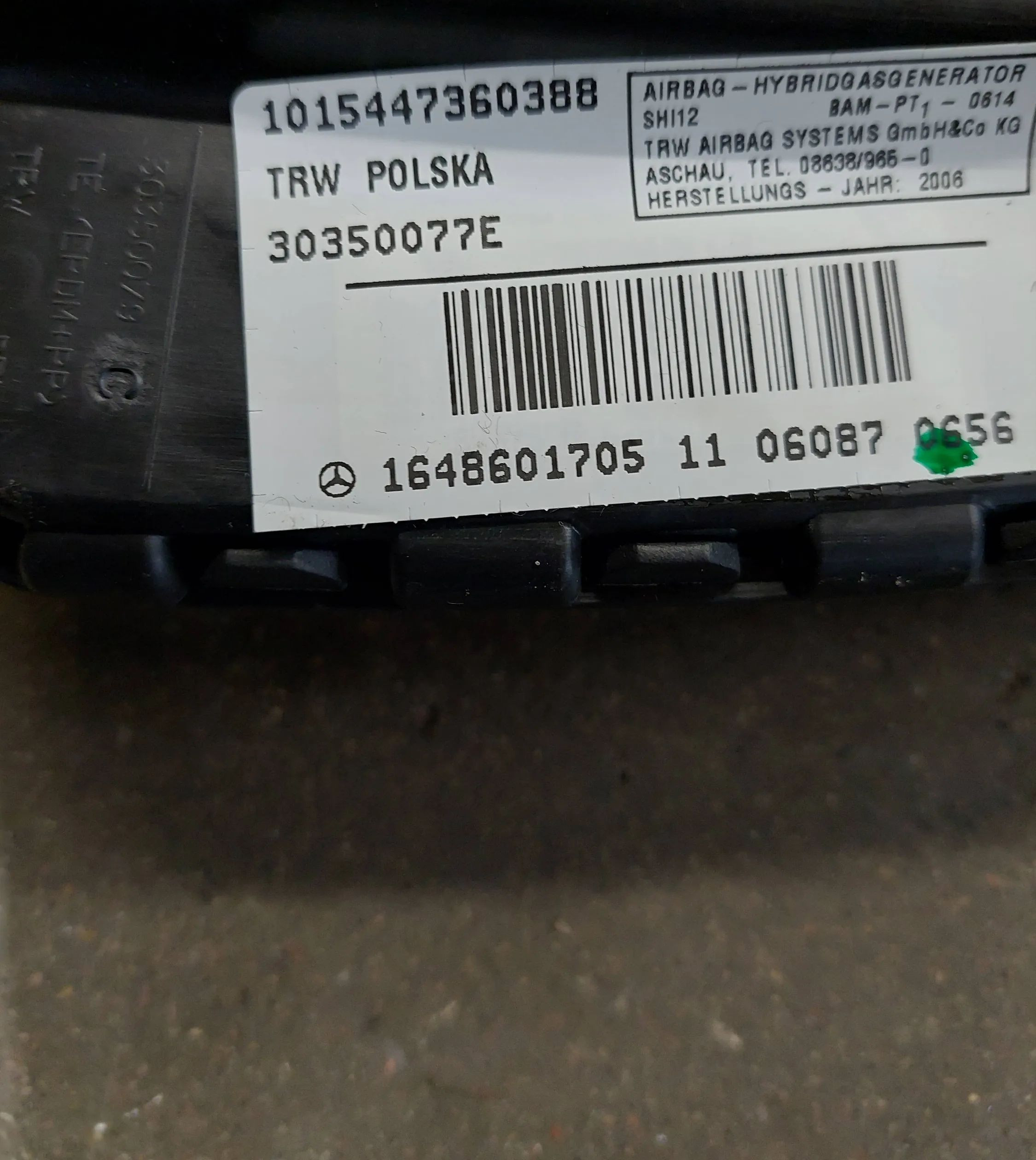 Подушка безопасности в сиденье 1648601705, 30350077E Mercedes-Benz R W251