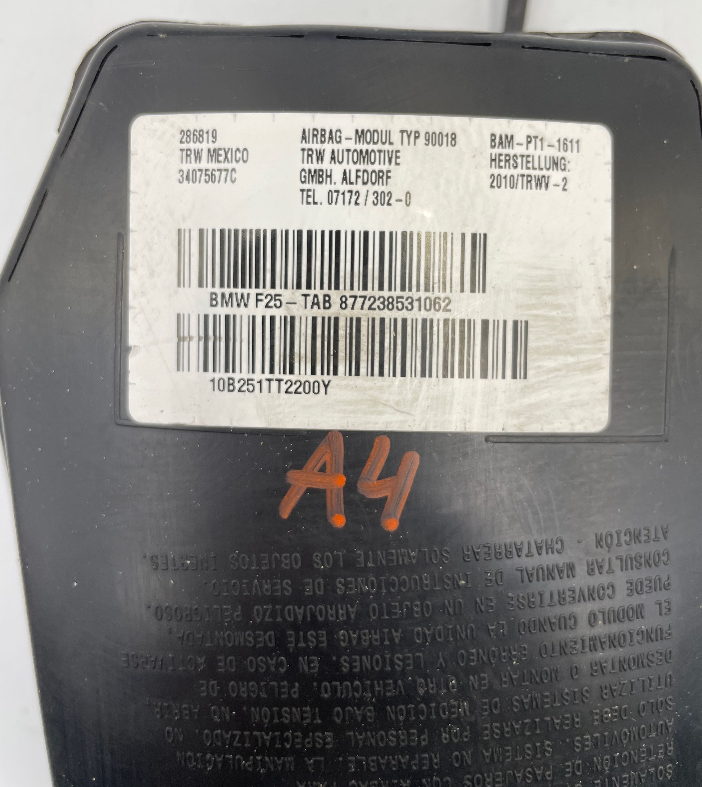 Подушка безопасности в сиденье 877238531062, 34075677C BMW X3 F25