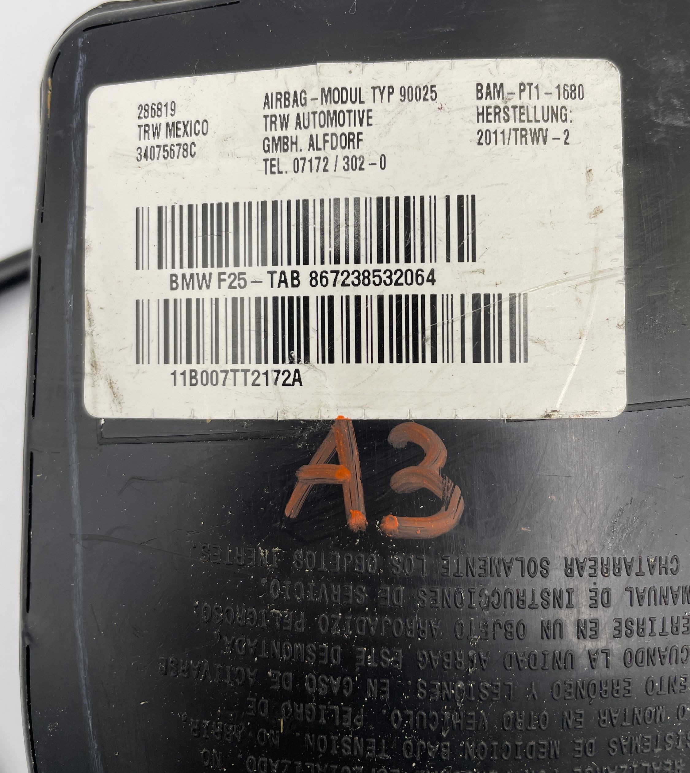 Подушка безопасности в сиденье 867238532064, 296910 BMW X3 F25