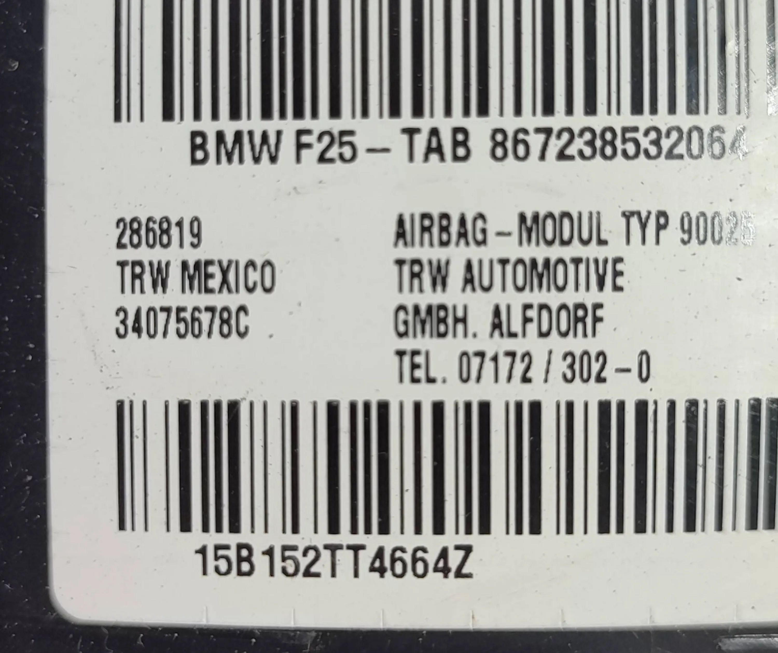 Подушка безопасности в сиденье 34075678C, 15B152TT4664Z BMW X3 F25