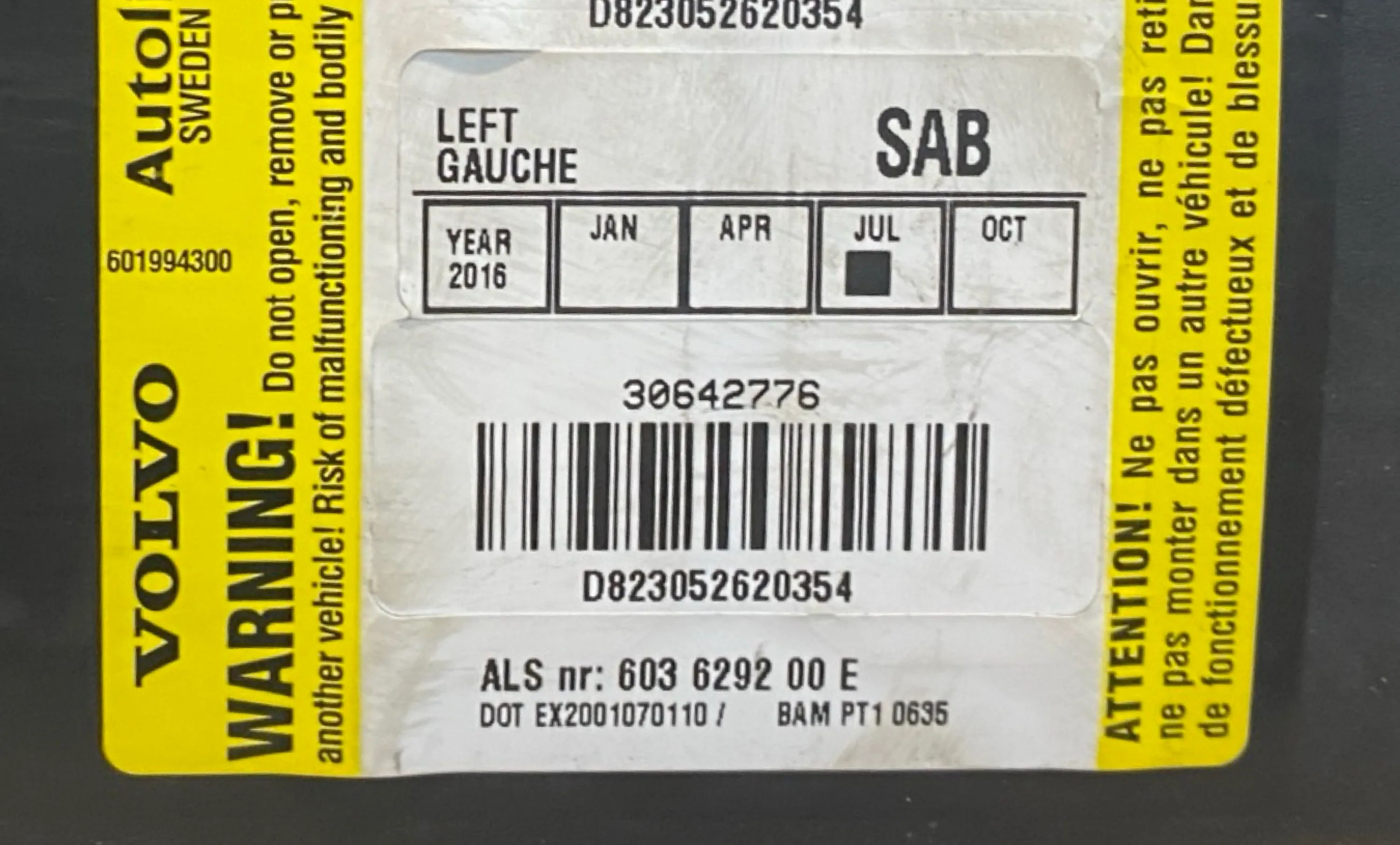 Подушка безопасности в сиденье 30642776, 30642776 Volvo XC90