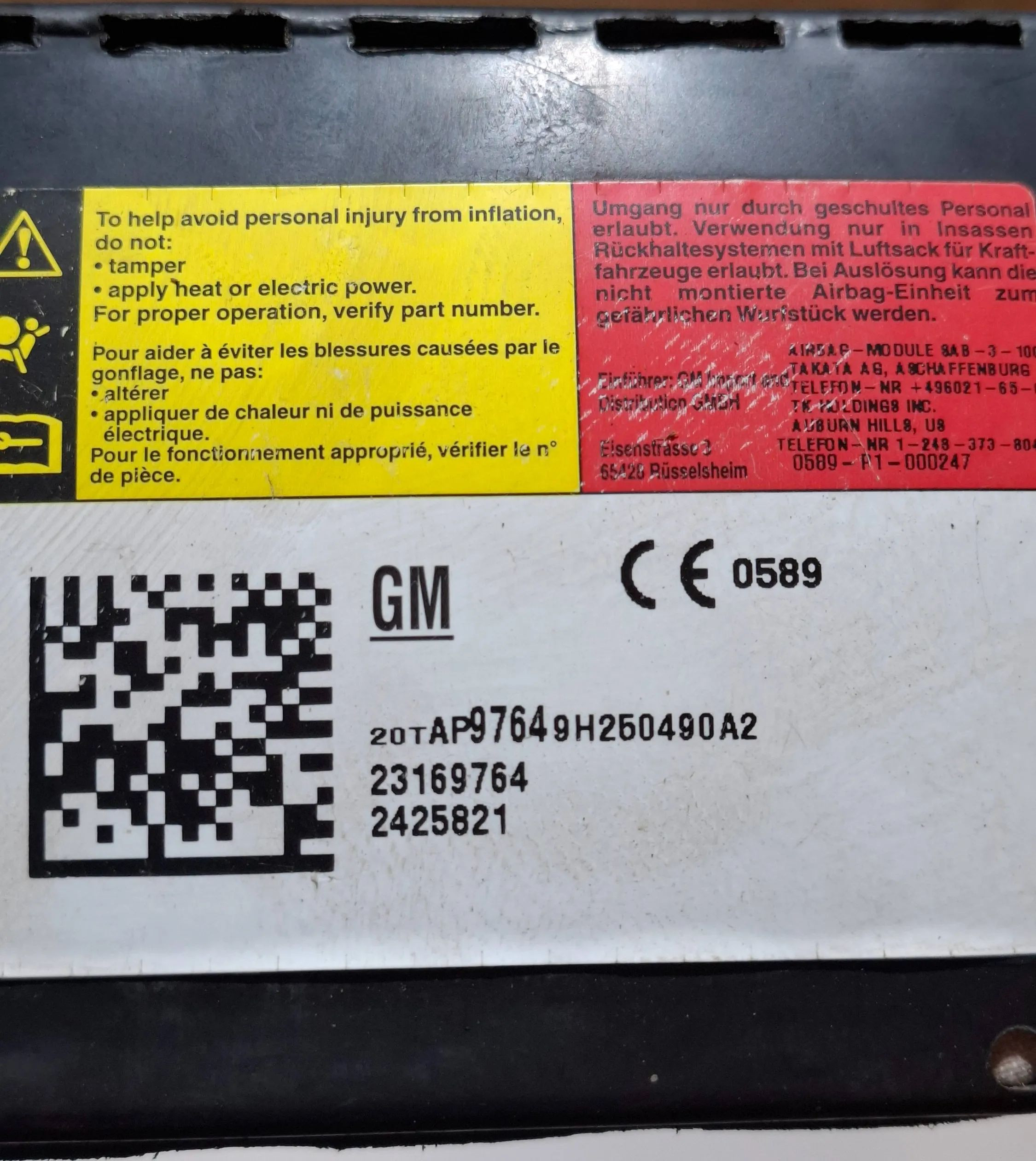 Подушка безопасности в сиденье 23169764, 2425821 Chevrolet Camaro