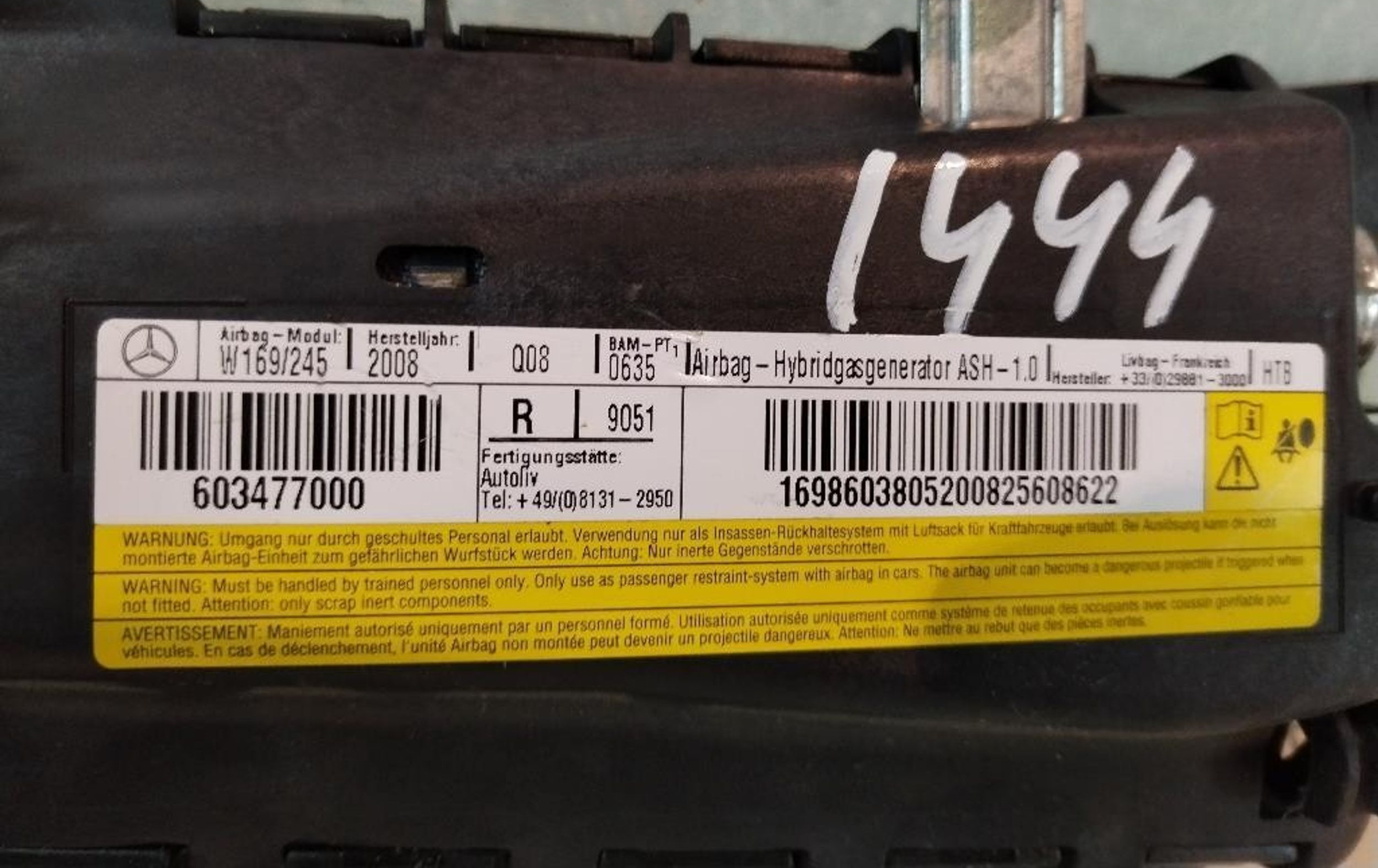 Подушка безопасности в сиденье 1698603805, 1698603805 Mercedes-Benz A W169