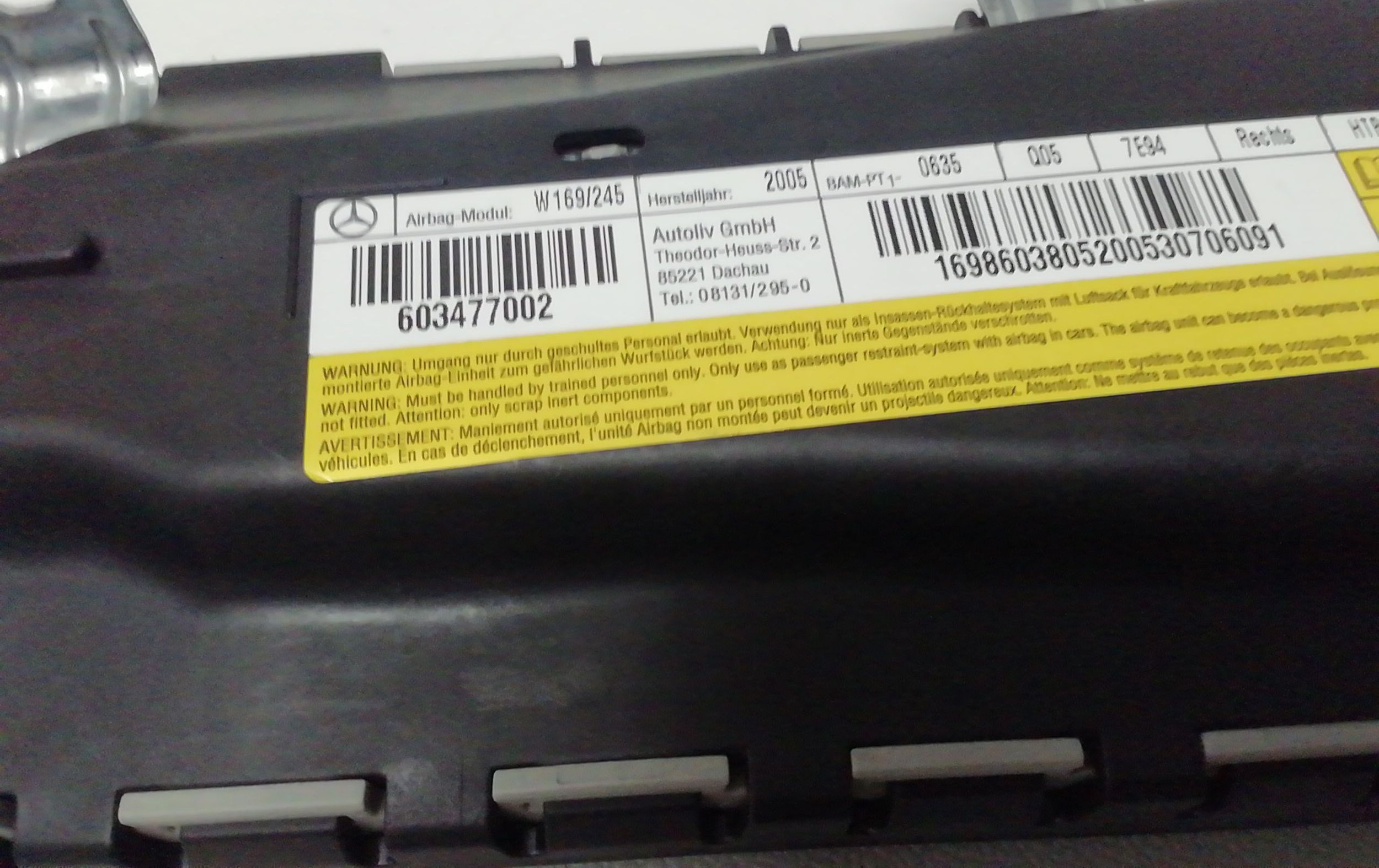 Подушка безопасности в сиденье 603477002, 603477002 Mercedes-Benz A W169