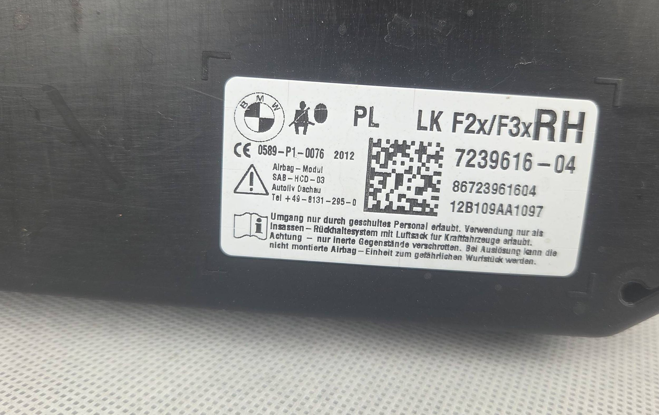 Подушка безопасности в сиденье 7239616, 12B109AA1097 BMW 4 F36 Gran coupe
