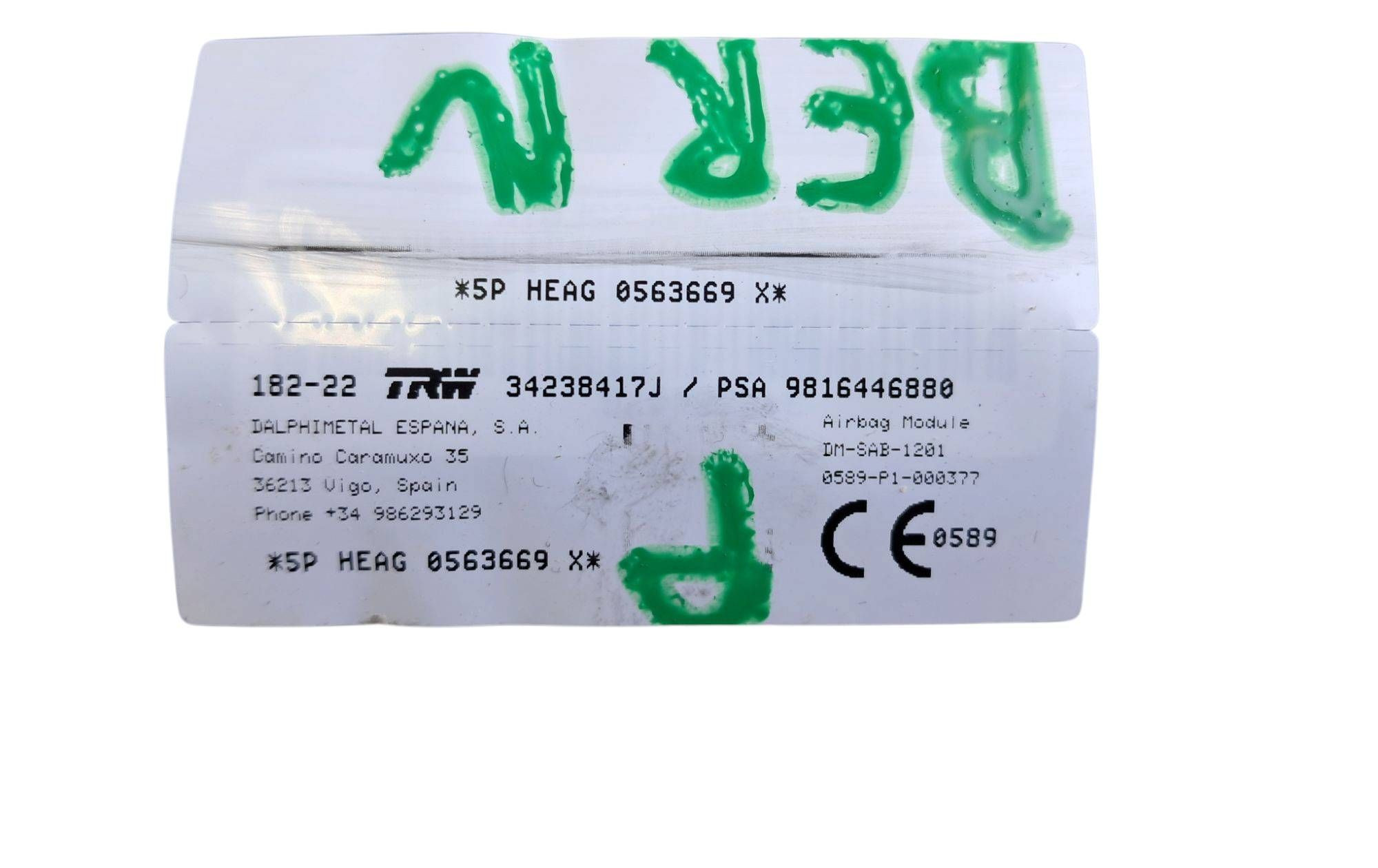 Подушка безопасности в сиденье 9816446880, 0563669 Toyota ProAce City