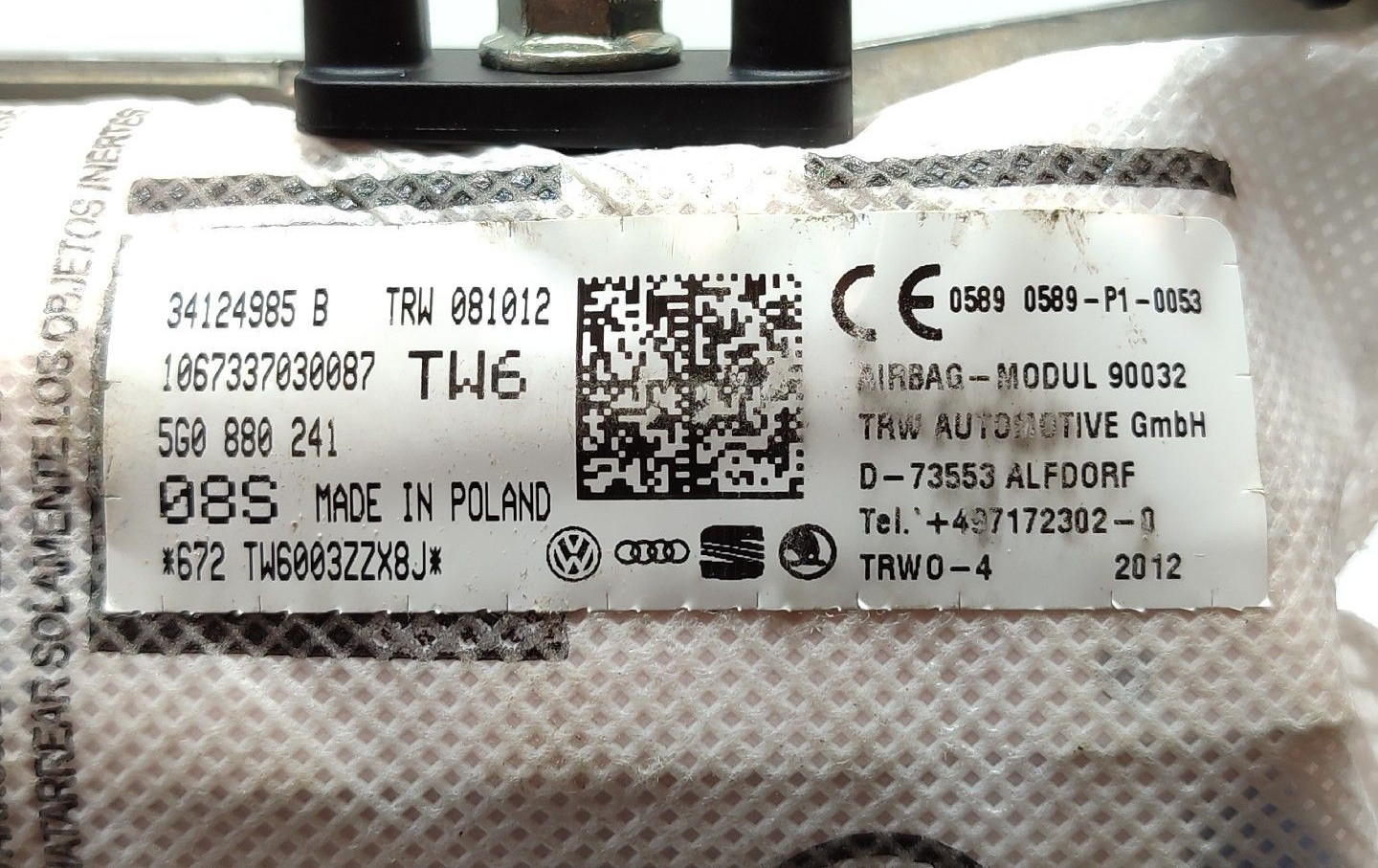 Подушка безопасности в сиденье 5G0880241, 34124985 Volkswagen Golf VII
